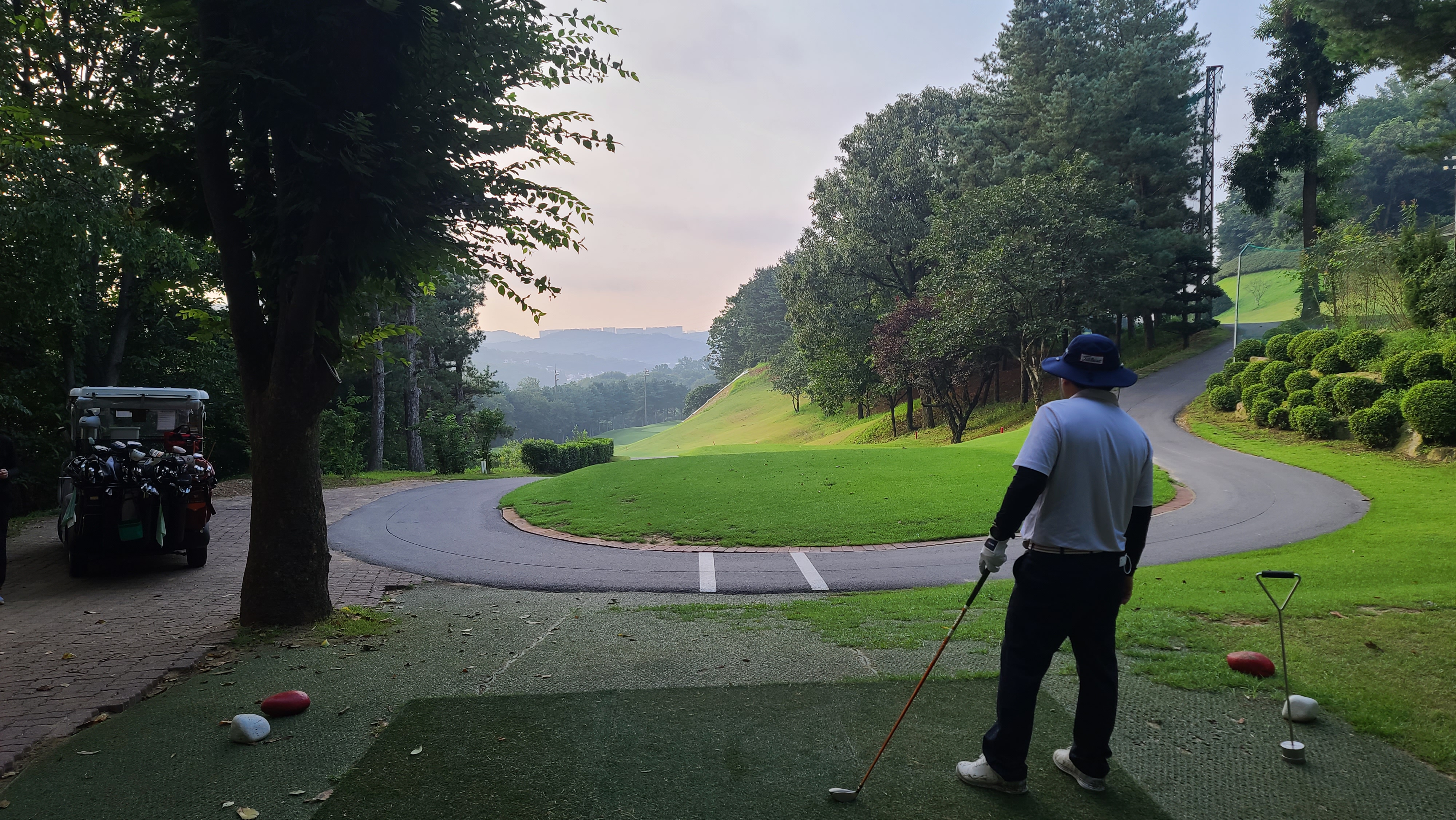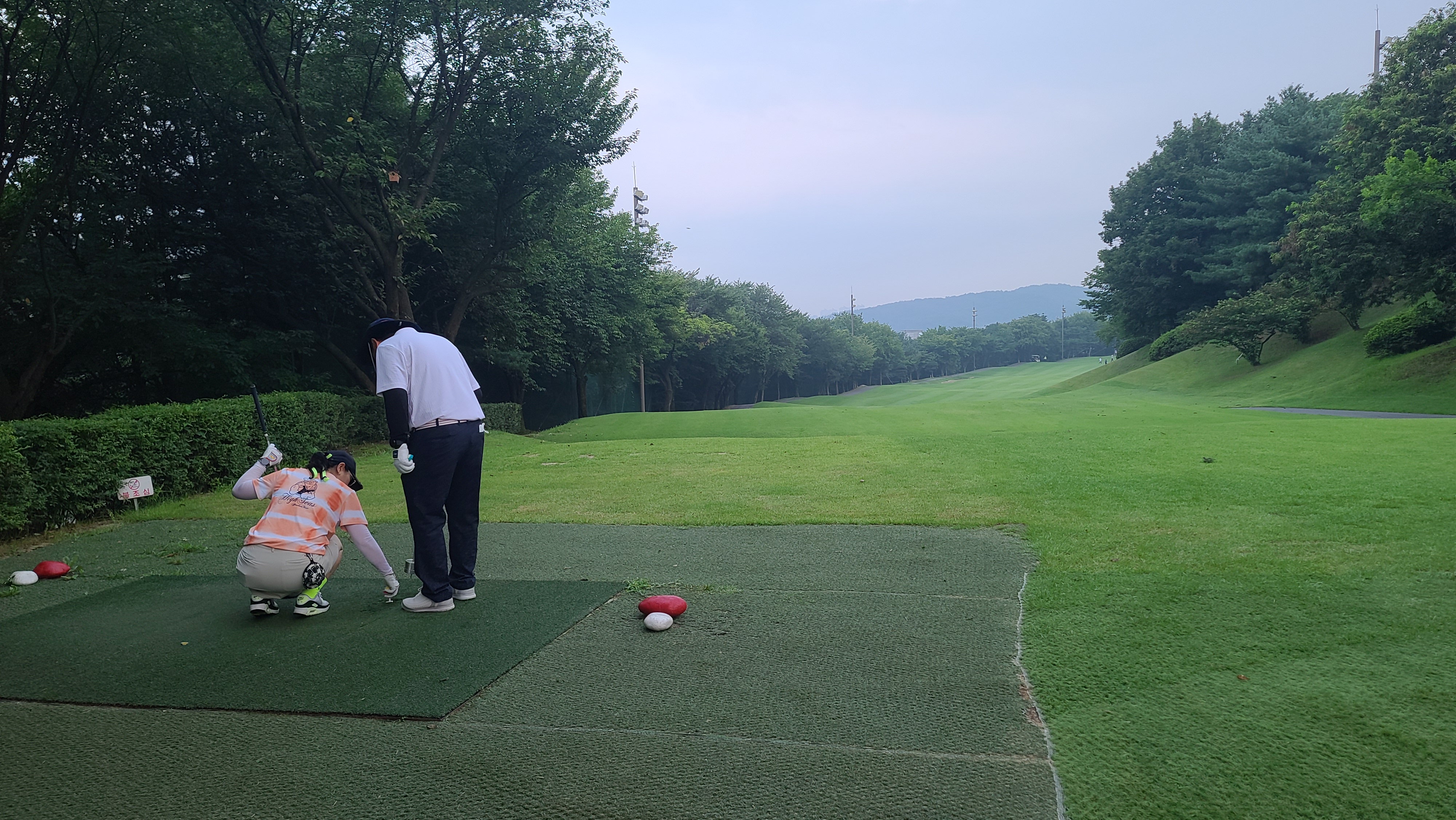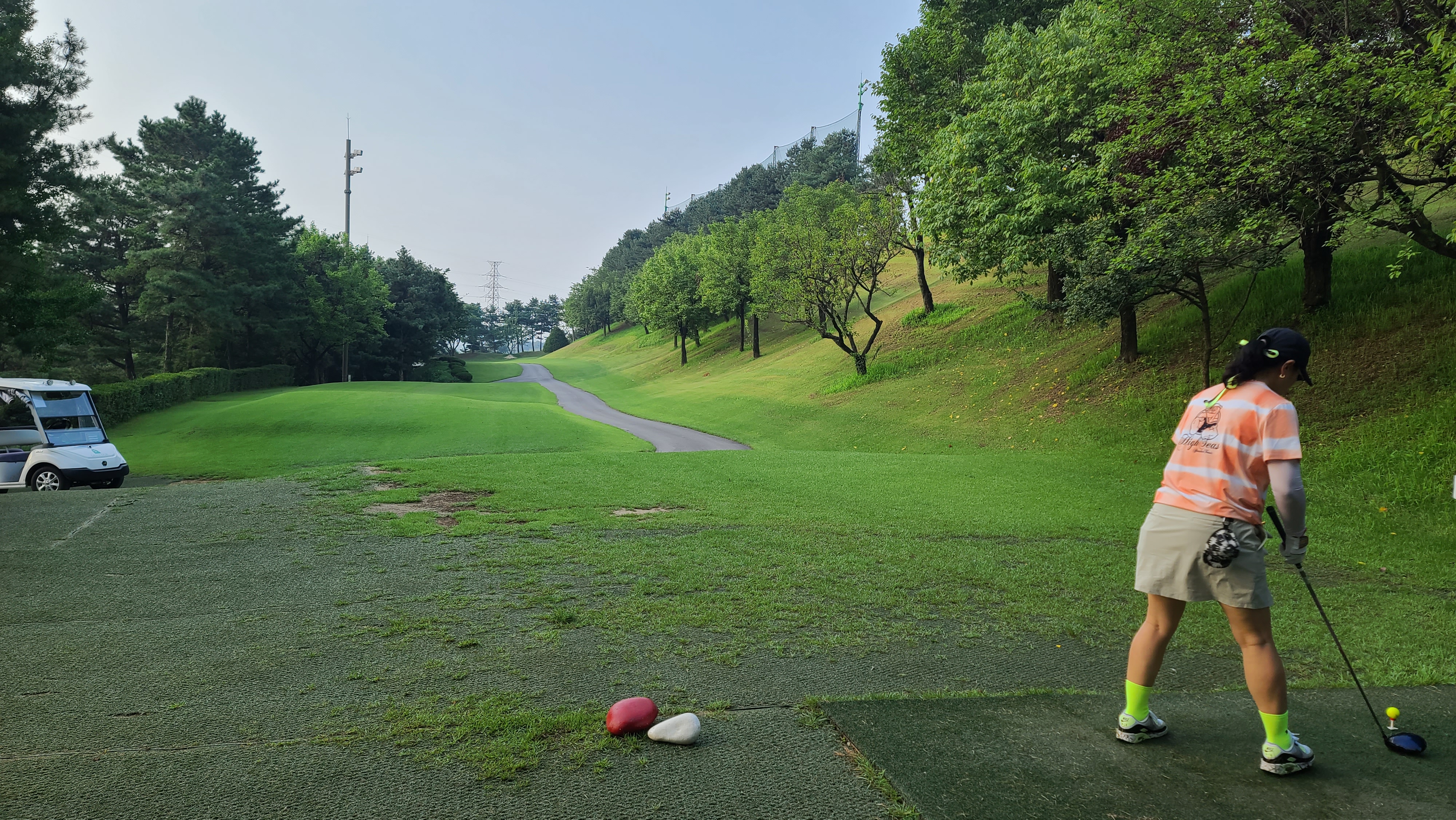 코스가 짧다보니 원온을 노리다가 힘이들어가 힙턴이 늦어 슬라이스 방향으로 공이 가고 말았습니다. 골프는 힘이 들어가면 안된다는 교훈을 다시 한번 되새기며 여유로운 마음으로 자신만의 루틴을 잊지말고 연습을 재개합니다.