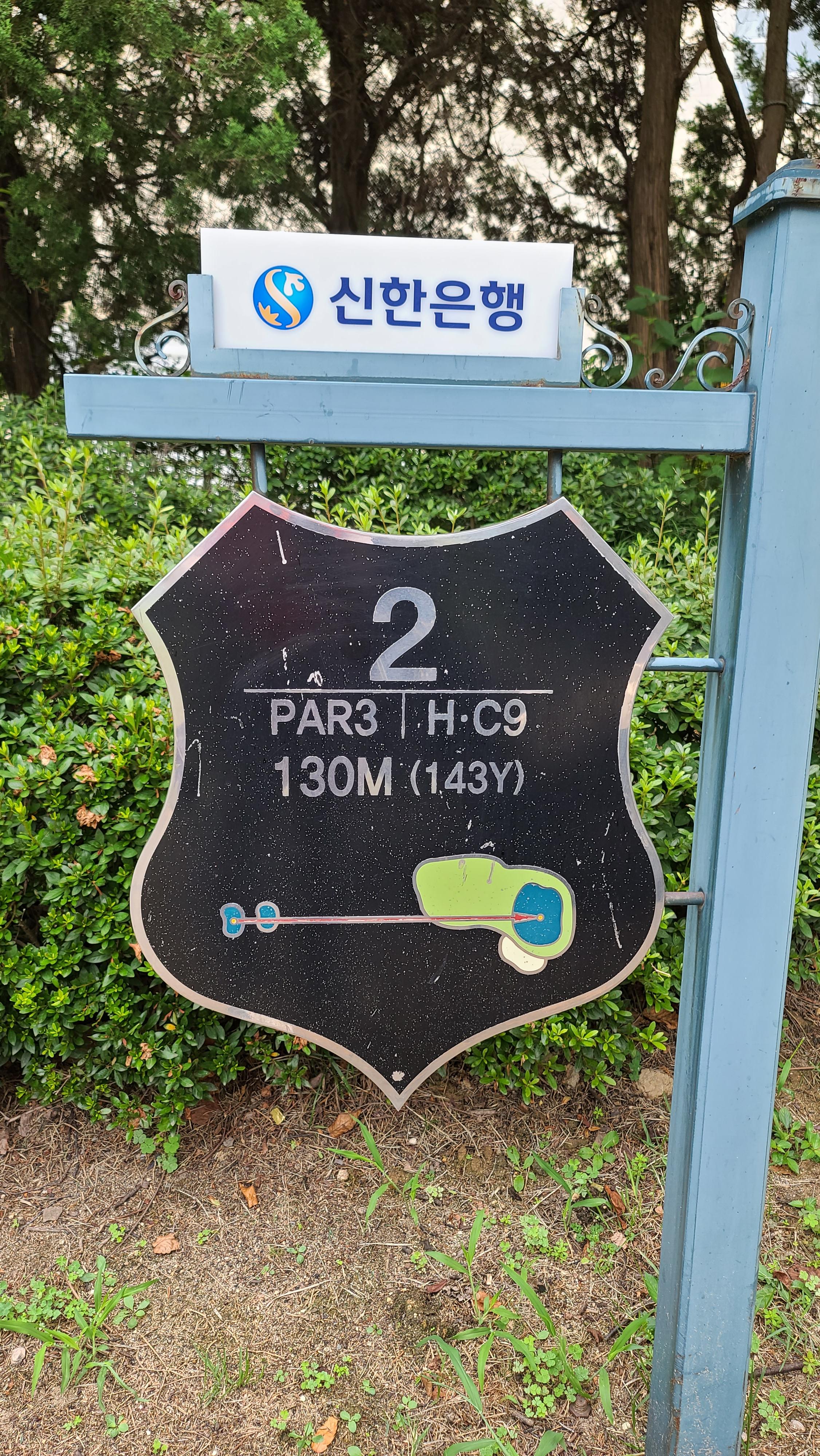 2번은 131m 직선형태의 파3홀로 중간 헤저드도 없기 때문에 무난하게 공략이 가능한 쉬운 코스입니다. 가볍게 티샷을 하고 방향만 빗나가지 않는다면 손쉽게 마무리 가능합니다.
