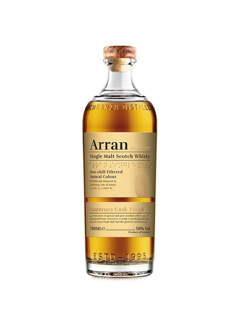 섬지역에 위치한 증류소의 기후 특성으로 짠내음과 스파이시한 원액의 특성을 가지고 있으며, 셰리와인, 포트와인, 소테른 등 여러가지 종류의 와인을 숙성시켰던 통을 사용하여 위스키원액을 숙성 아란 위스키만의 독특한 맛과향을 내는 것이 특징이기도 합니다.
