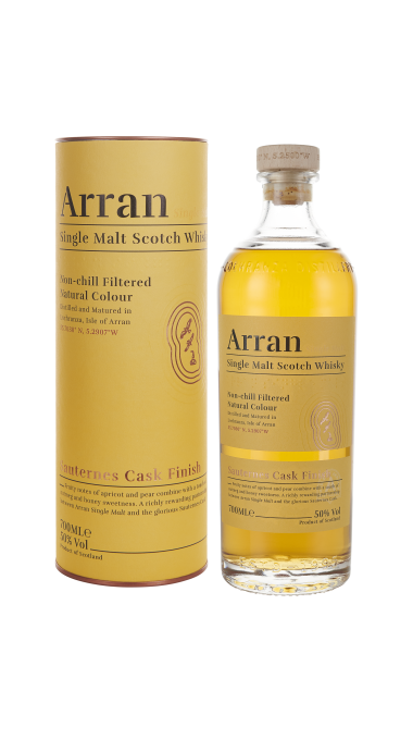 아란 소떼른 캐스크 피니시 제품은 오크통에서 숙성시킨 위스키를 소테른 캐스크로 옮겨 담아 소테른의 맛과 향이 스며들도록 일정기간 숙성시킨후 병입한 제품입니다. 소테른은 귀부와인이라고도 불리우며 귀부병에 걸린 당도가 매우 높은 포도로 와인을 제조 매우 달콤한특징을 가진 고급와인입니다. 소테른 와인의 영향으로 매우 달콤한 맛과 향이 특징인 제품이며, 멜론과 허니 향의 풍부함이 일품인 제품입니다.