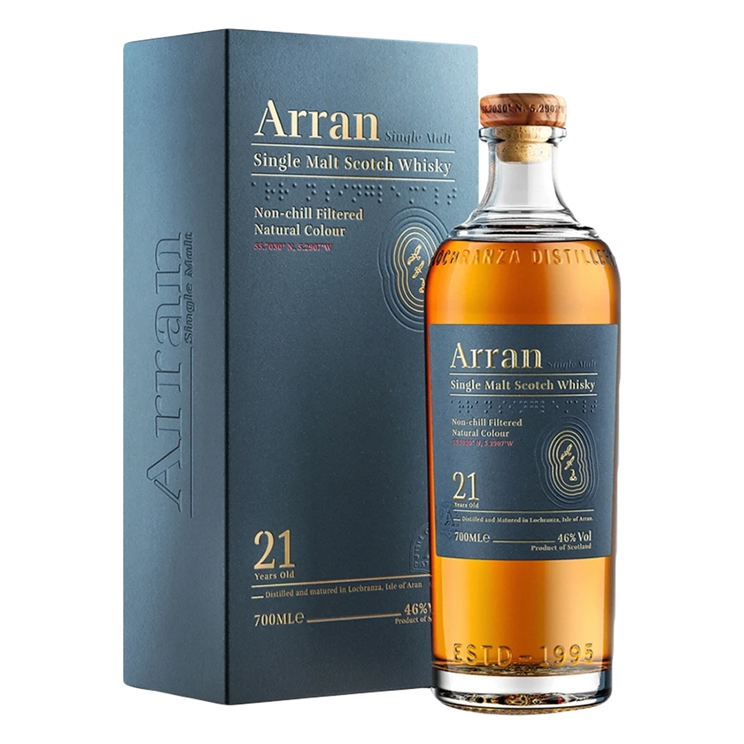 아란 싱글몰트 위스키 제품군 중 최고급 라인업의 제품으로 아메리칸 오크와 셰리캐스크 21년 숙성 원액의 혼합으로 이루어진 제품입니다. 증류소 역사와 함께 시작된 최고급 연산제품으로 인기가 많아 매우 구하기 어려우며 헤이즐넛이 연상되는 풍부한 나무향과 달콤하면서도 스파이스한 느낌이 이색적인 최고급 제품입니다. 위스키 원액 부족으로 국내에서는 보기힘든 제품군입니다.