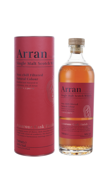 이탈리아 베네토 지방의 유명한 와인 아마로네를 숙성시켰던 캐스크를 사용하여 피니시한 아란 아마로네 캐스크 피니시 제품입니다. 신맛이 특징인 아마로네 와인의 영향으로 시트러스한 맛이 위스키 원액에 배어들어 체리와 크랜베리, 서양배 등의 상큼한 향이 특징이며, 매우 짙은 위스키 원액의 색이 특징입니다.