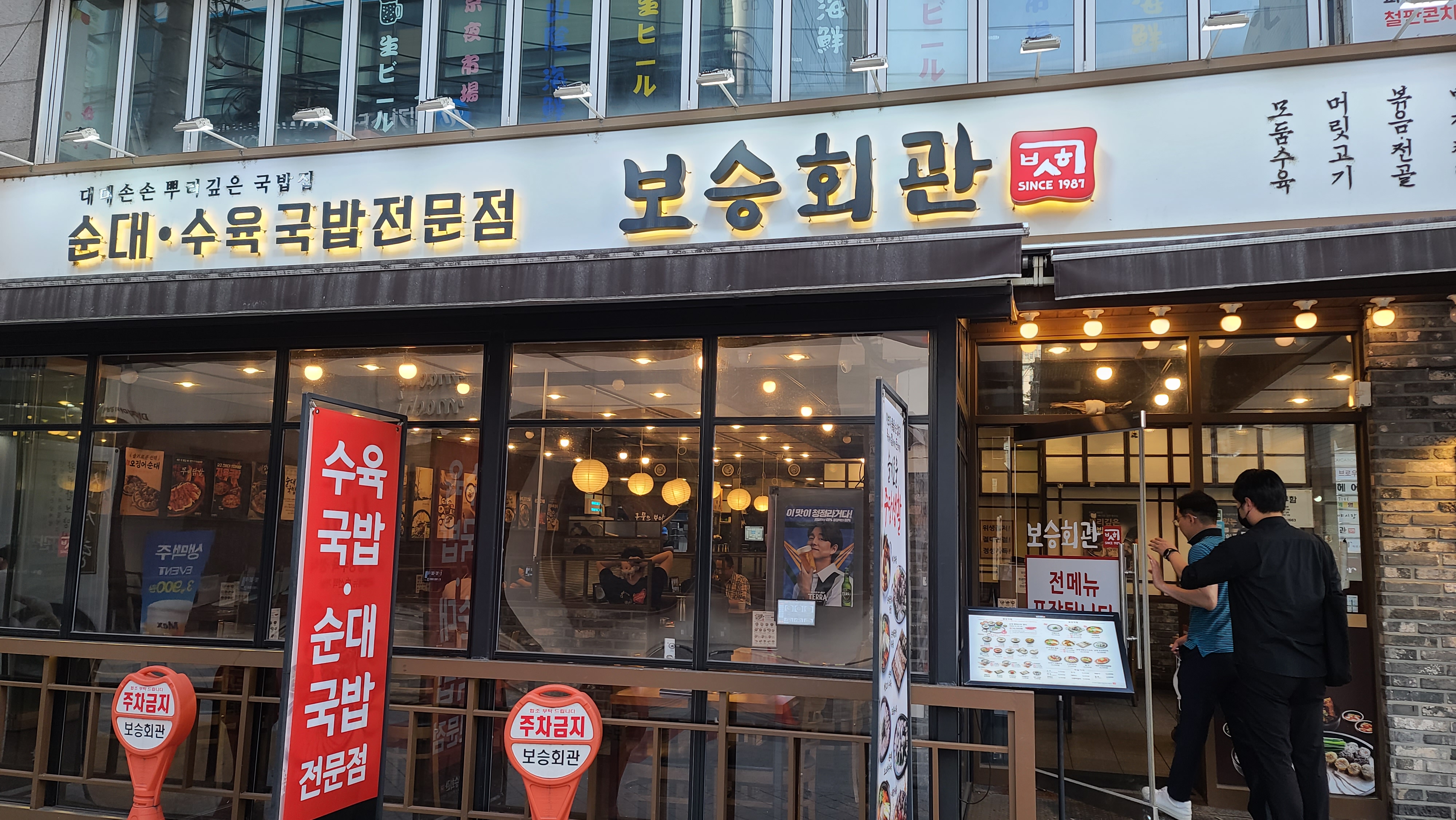 강남역 부근에 위치한 보승회관은 순대국밥으로 유명하고 수육을 전문점으로 판매하는 음식점으로 간단하게 식사를 하는 손님들이 많은 곳입니다. 순대국이 전문이지만 오늘은 냉면과 고기가 먹고 싶어 도전해보기로 합니다.