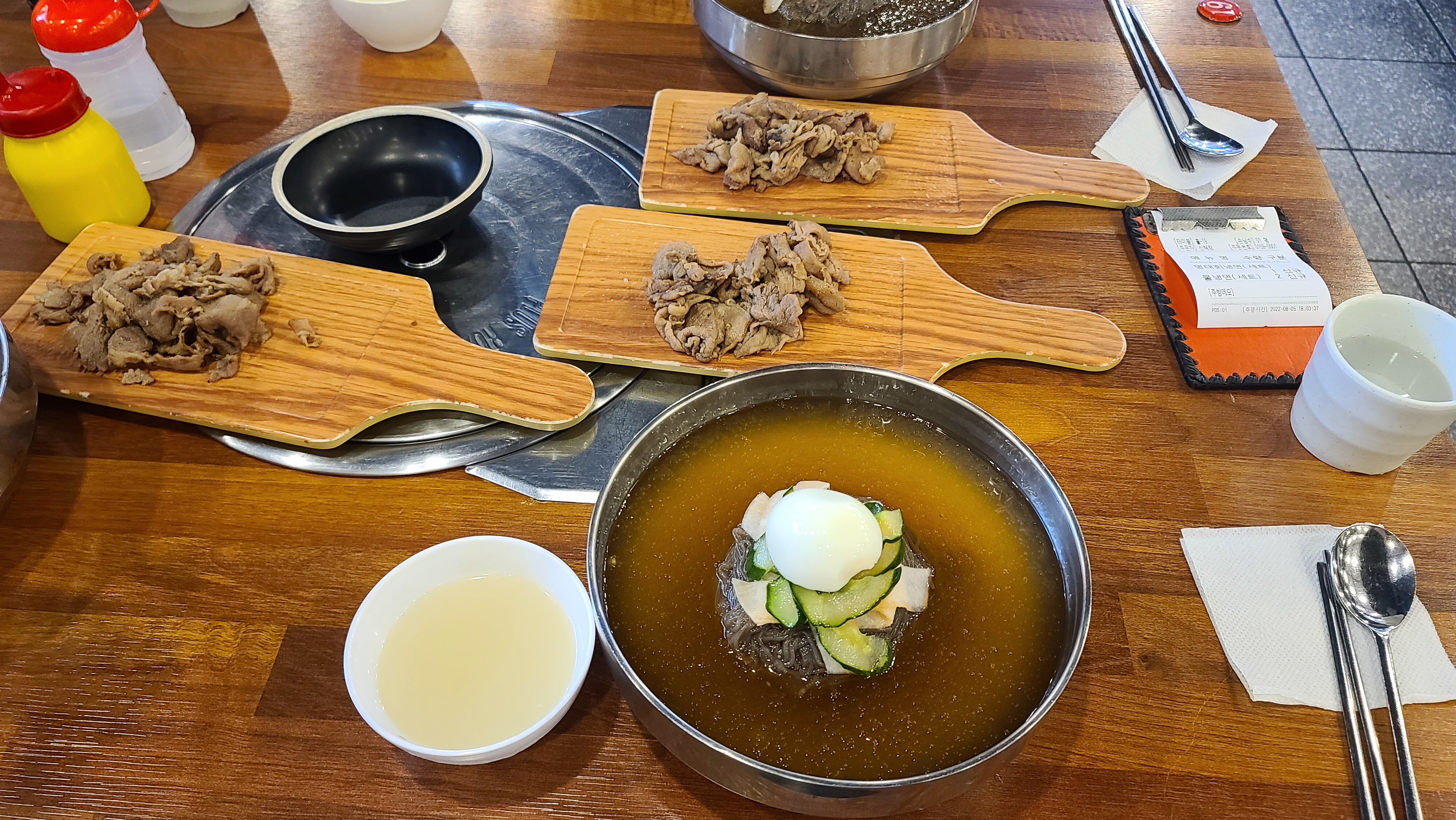 면발의 아쉬움을 뒤로한채 육수와 고기의 조합을 즐겨봅니다. 다시다육수의 감칠맛이 고기와 만나 입안에 즐거움을 선사해줍니다. 먹으면 먹을 수록 면의 아쉬움이 남는것이 어쩔수가 없습니다.