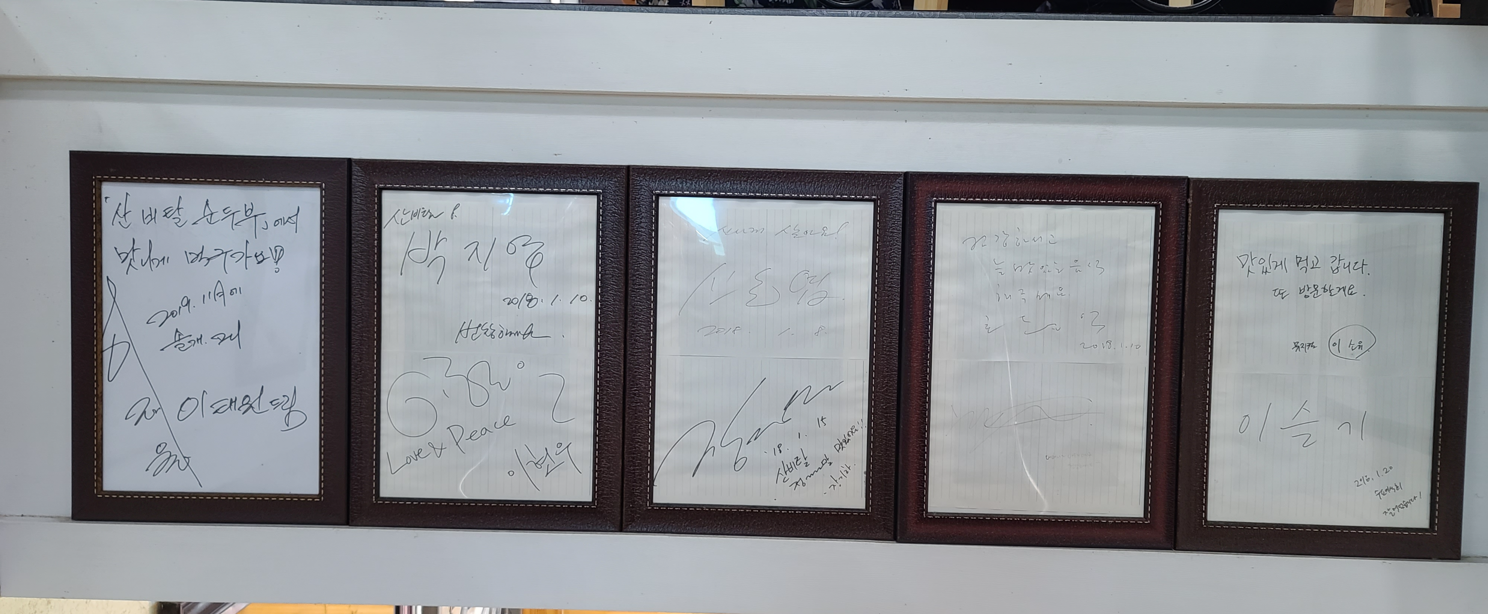 맛있게 먹고 계산대 앞에 보니 여러유명인들의 사인이 붙어 있습니다. 신동엽, 이현우 등 수요미식회 멤버들외에도 박지영, 이슬기 등 여자 프로 골프선수들의 사인도 붙어 있는 것을 보니 몽베르CC 앞이라 골프선수들이 몸보양식으로 많이 먹는 곳이라는 것을 알 수가 있습니다.