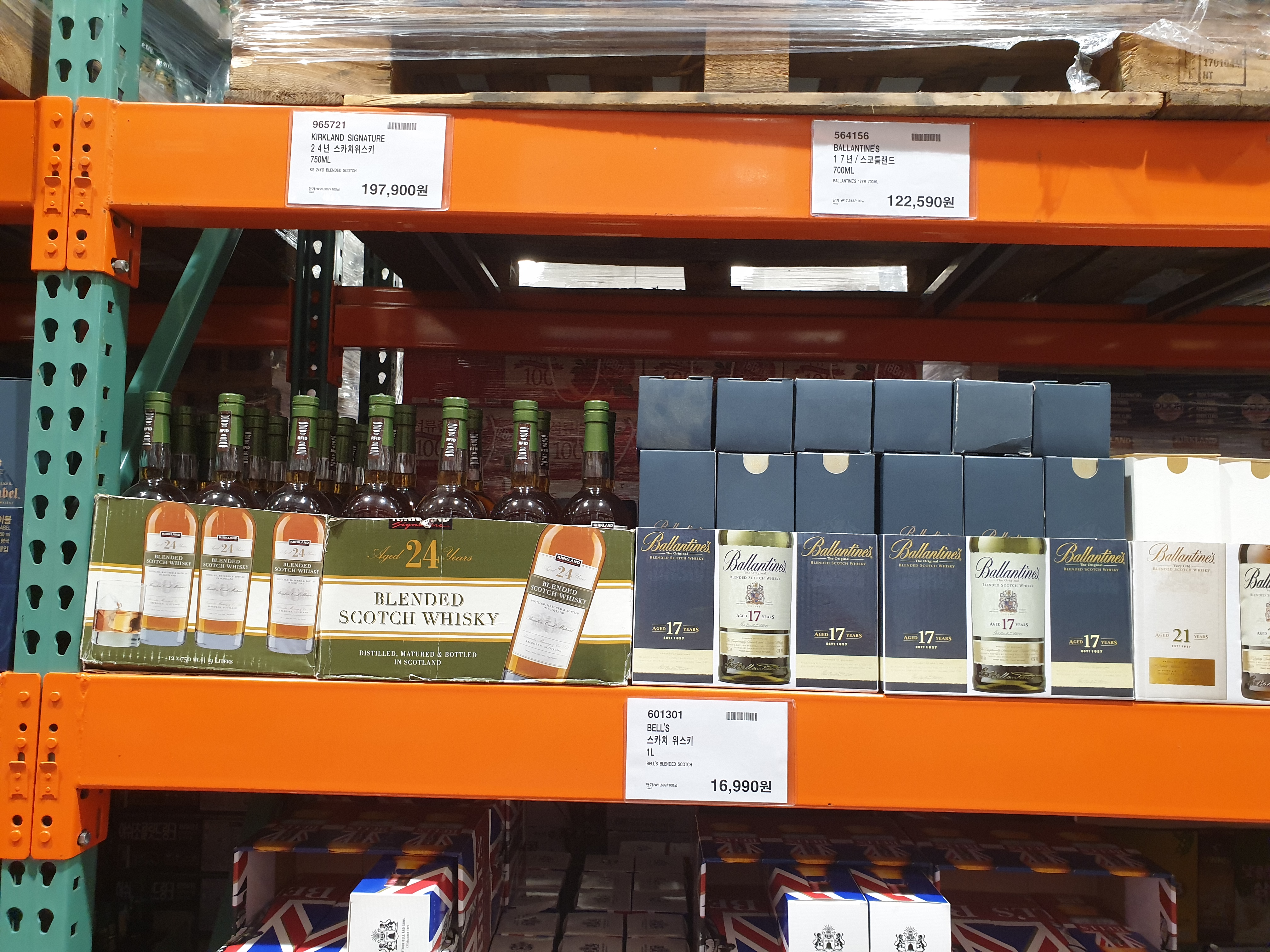 시바스리갈과 발렌타인마스터즈 위스키가 보입니다. 시바스리갈은 국내에서 박전대통령이 좋아하는 술로 알려져있고 발렌타인마스터즈는 한국인을 위해 따로 블렌딩한 위스키입니다. (얼마나 팔아줬으면...)