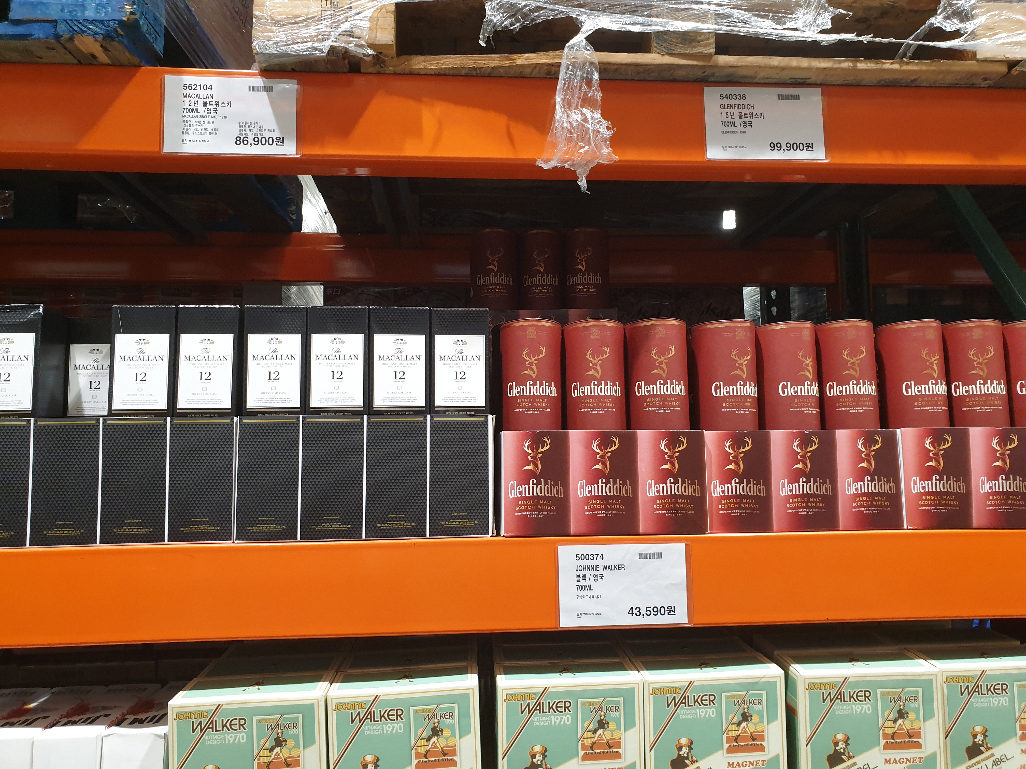 싱글몰트 위스키의 양대산맥 글렌피딕과 맥켈란이 나란히 진열되어 있습니다. 라이벌끼리 진열하고 소비자로하여금 고민하게 만드는 이런 진열방식 아주 맘에 듭니다.