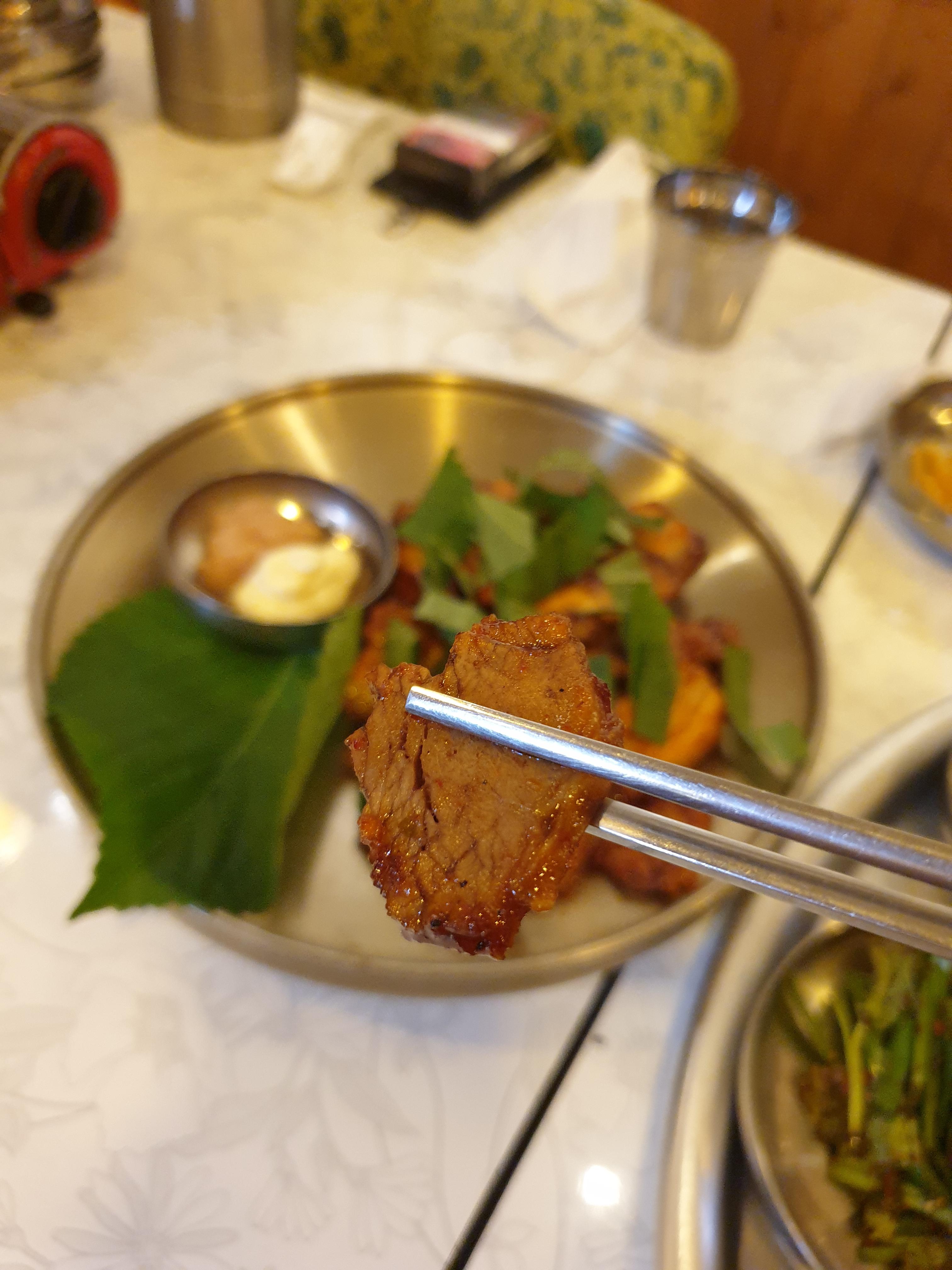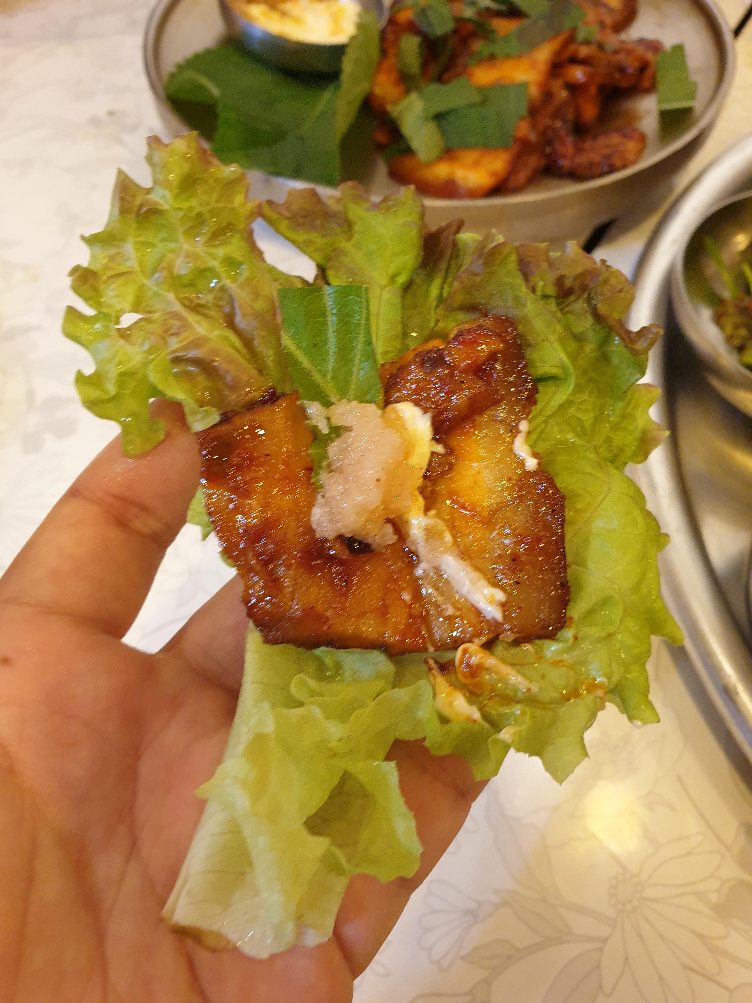 보쌈을 고기맛을 순수하게 느껴봅니다. 불보쌈이라 고기향을 온전히 느끼기는 어렵지만 잡내없이 잘만들었습니다.