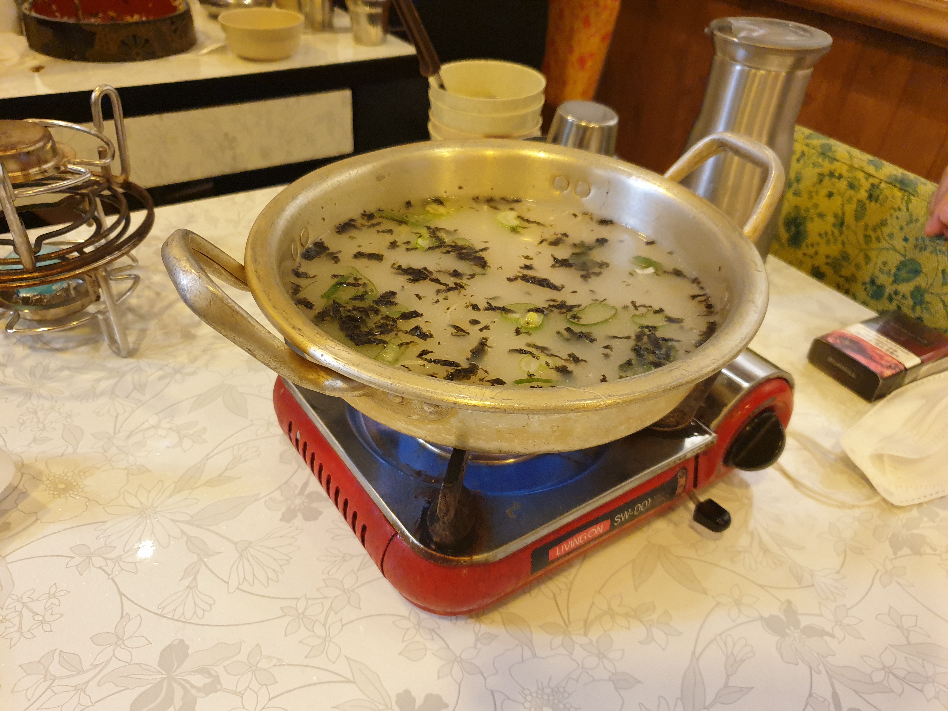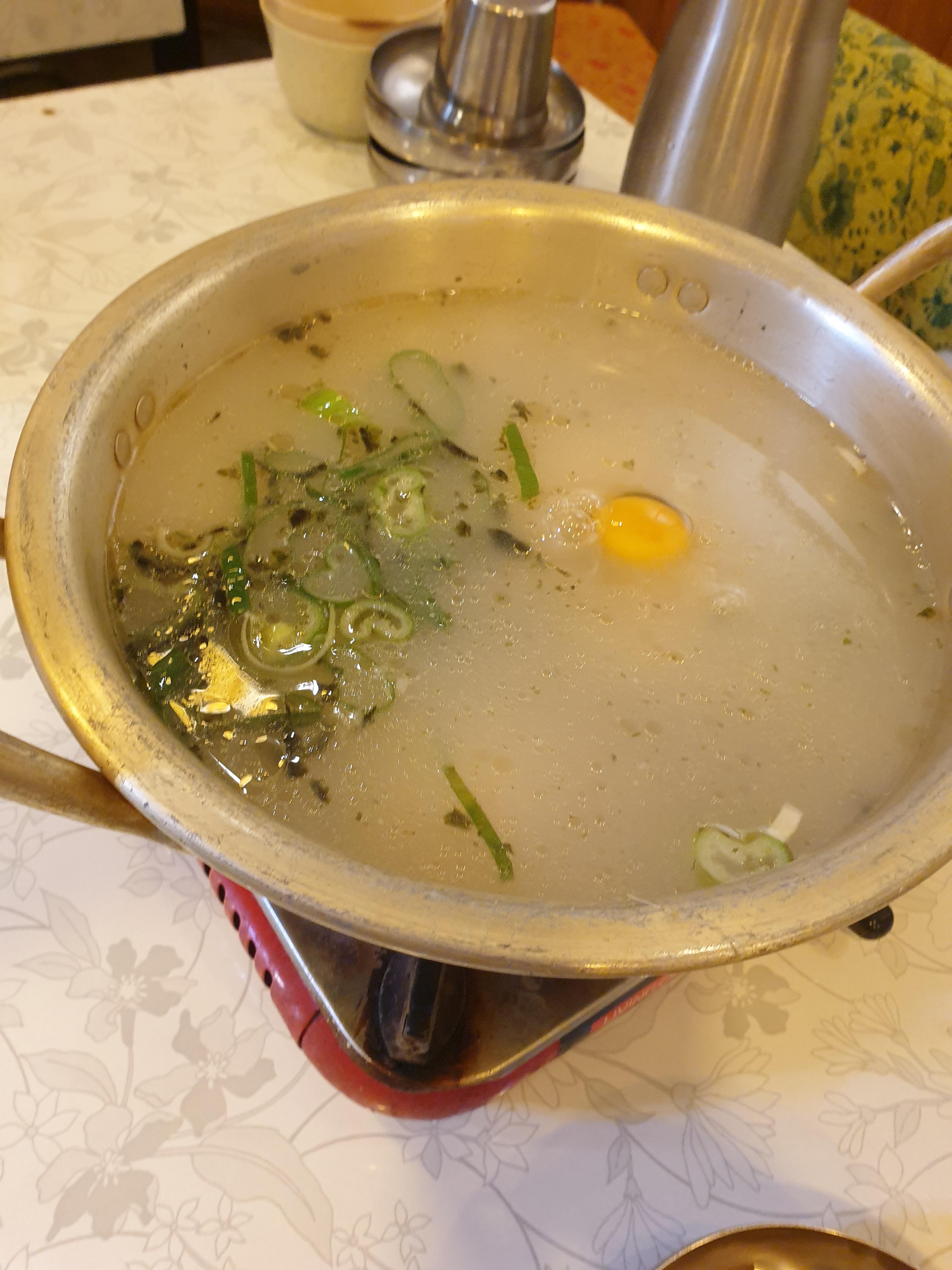 또한 보쌈,족발류 주문을하면 만두국 스타일의 국물이 나오는데 아까 사이드로 나온 날계란을 넣으면 더욱 고소한맛을 즐길수가 있습니다.