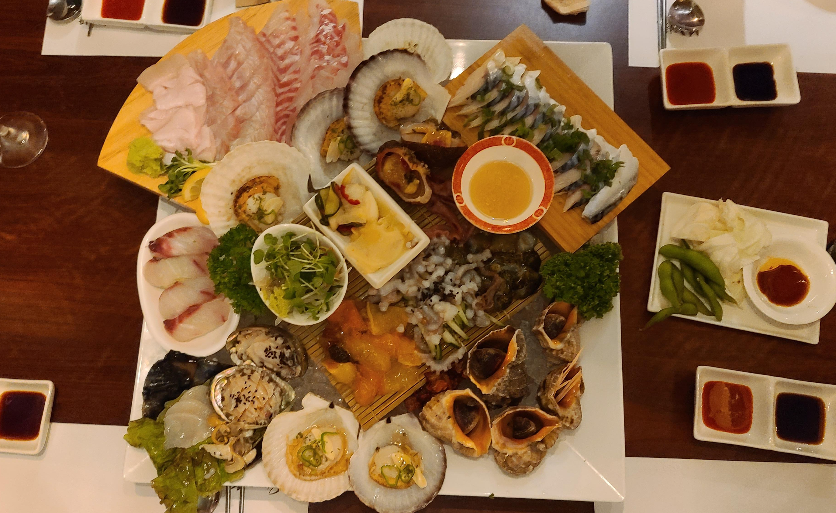 잠시 기다리자 주문한 북촌스페셜이 나왔습니다. 가리비, 소라, 전복 등 패류부터 도미, 광어, 고등어 등의 숙성회, 키조개 관자, 낚지, 멍게, 해삼 까지 다양한 해물이 한상가득 나오는 말그대로 스페셜 메뉴입니다.