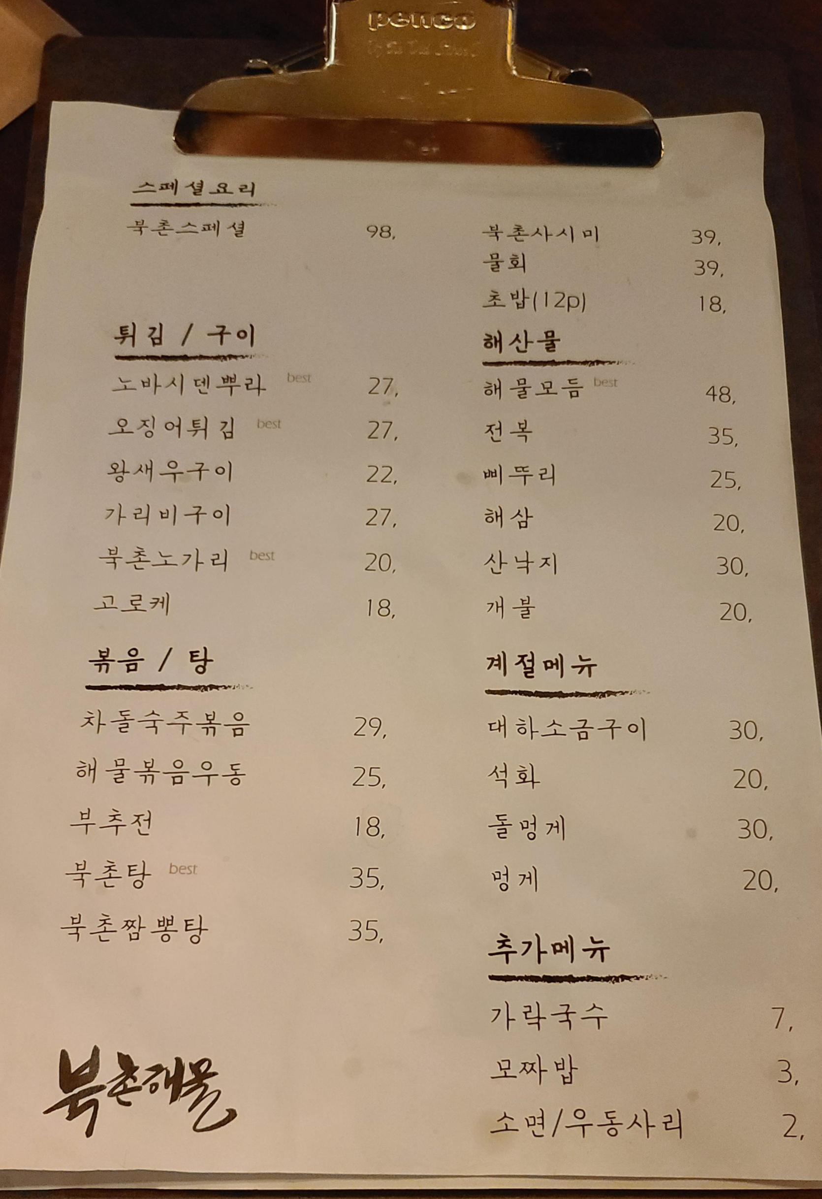 오랜만의 회식자리 선릉역 주변에서 모임이 있어 적당한 장소를 찾다가 비교적 최근에 오픈한 깔끔한 북촌해물을 가보기로 합니다. 북촌해물은 종로에 서촌계단집과 함께 유명한 해산물집인데 선릉역에 지점을 낸 모양입니다.