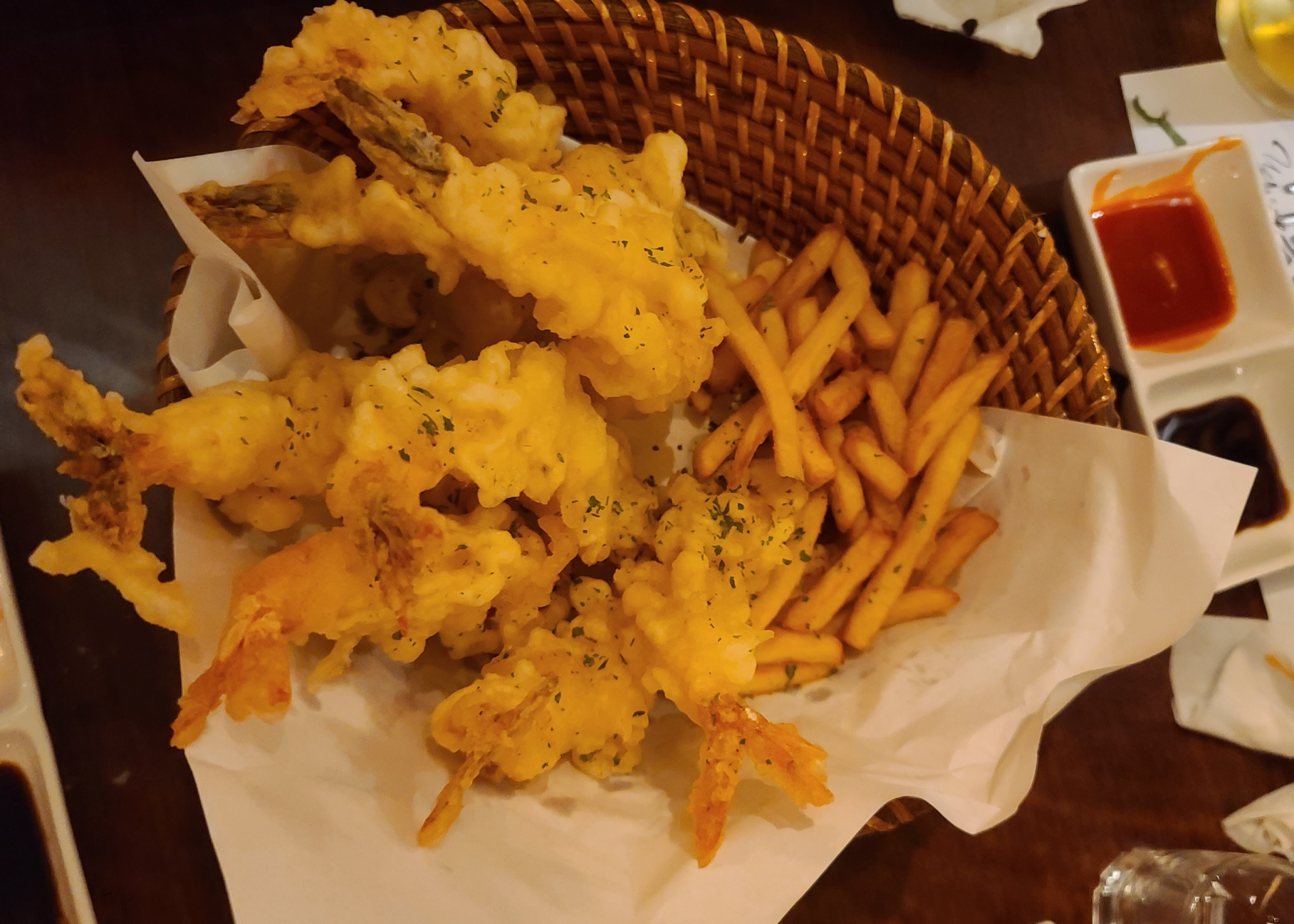 맛있게 해물을 먹고 마무리는 튀김인 노바시덴뿌라를 주문하기로 합니다. 크기가 큰 노바시 새우로 만든 튀김이라 한입 베어물면 새우의 육즙이 뿜어져 나오는 매우 훌륭한 마무리 일품입니다.