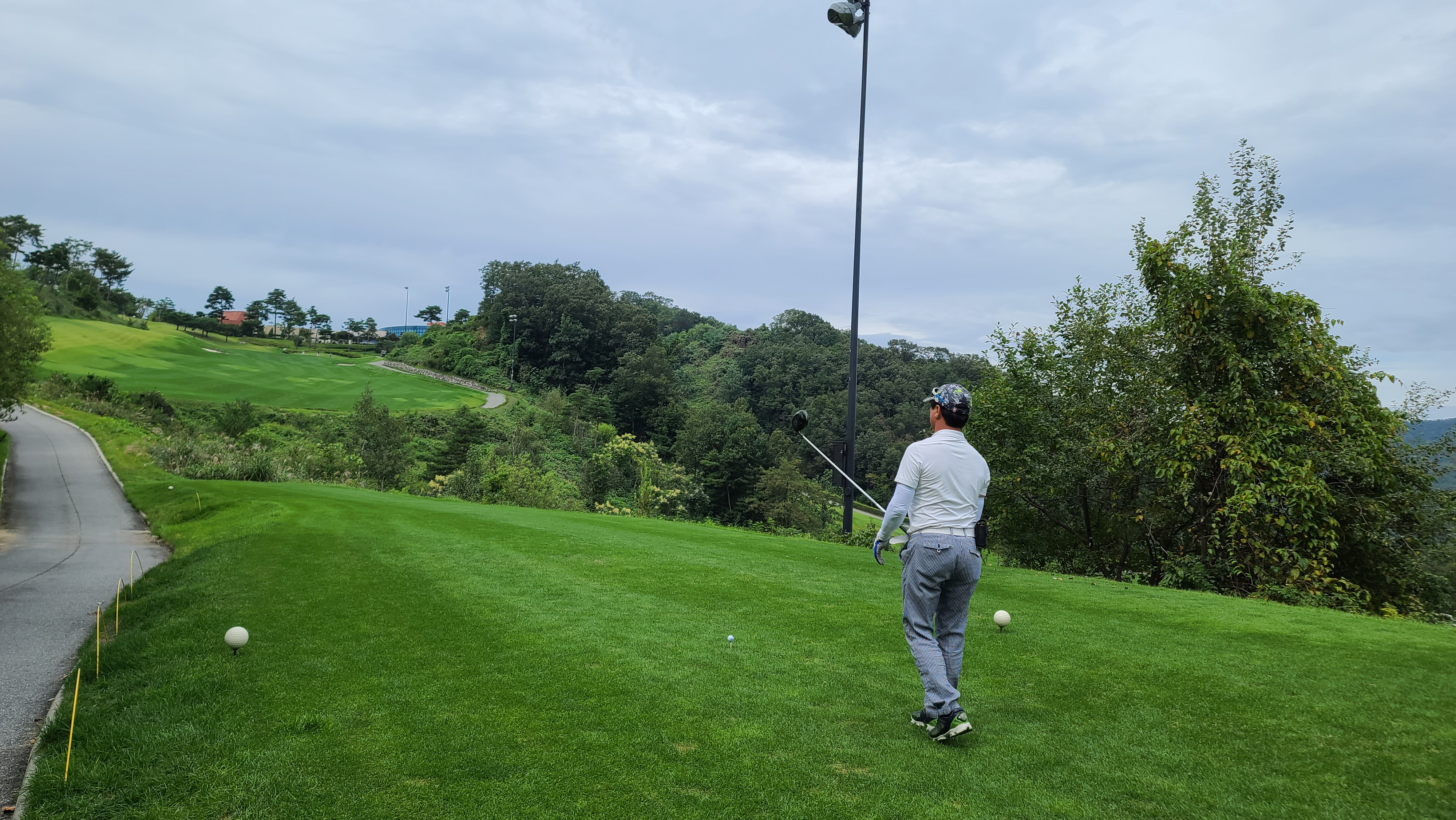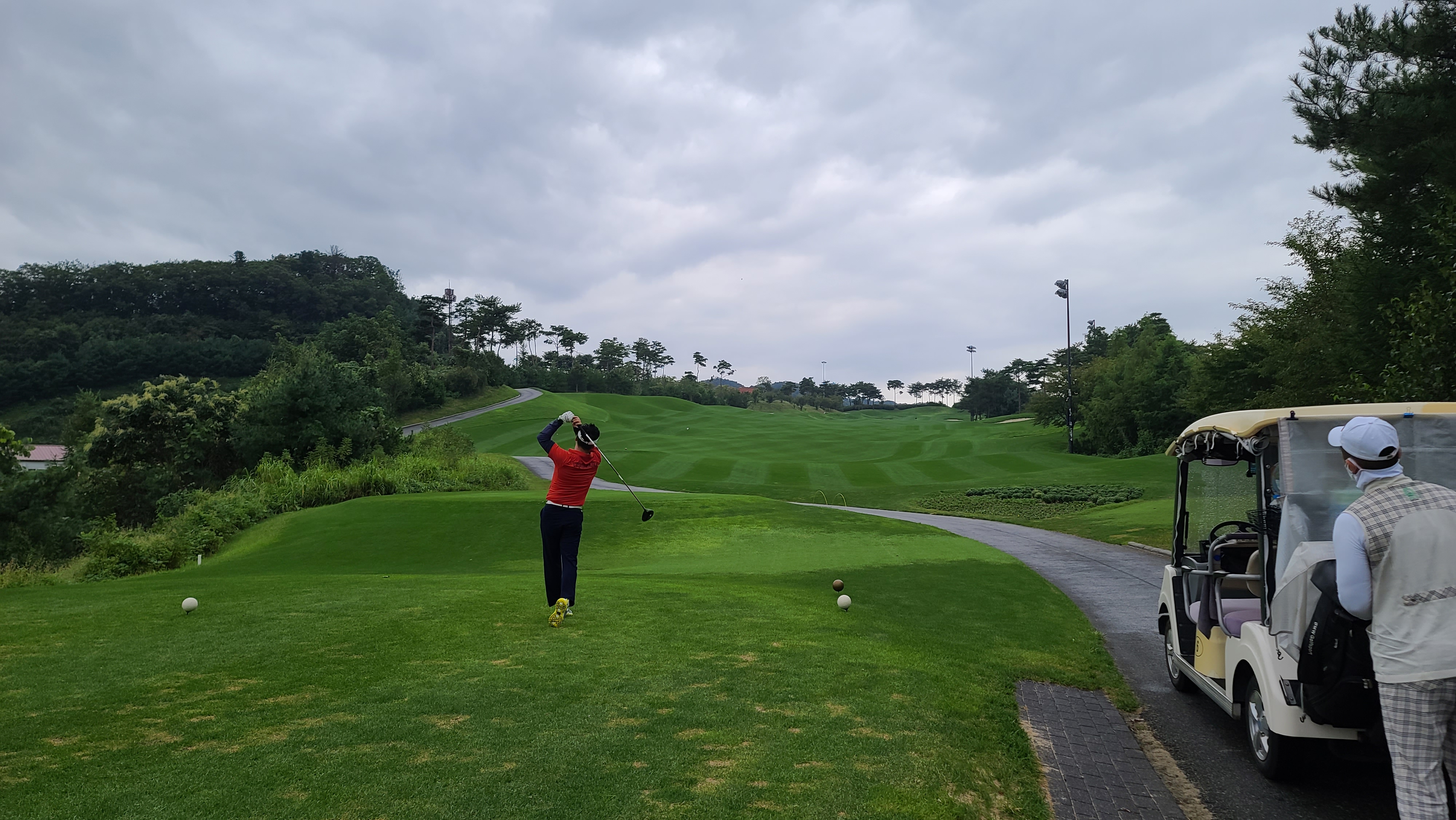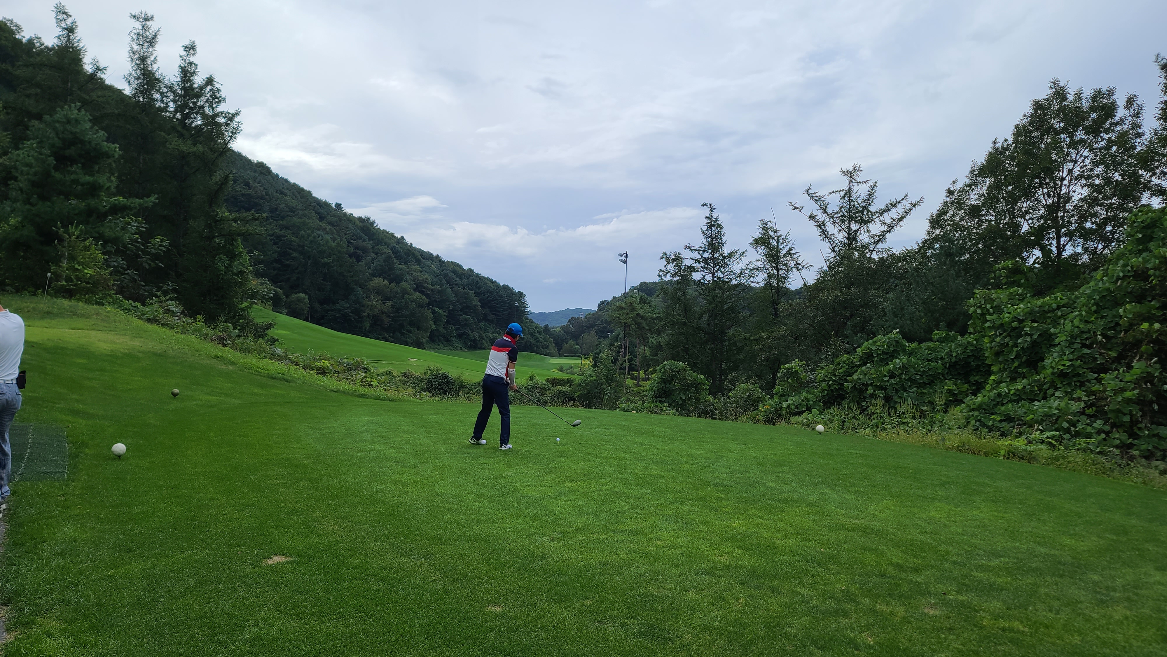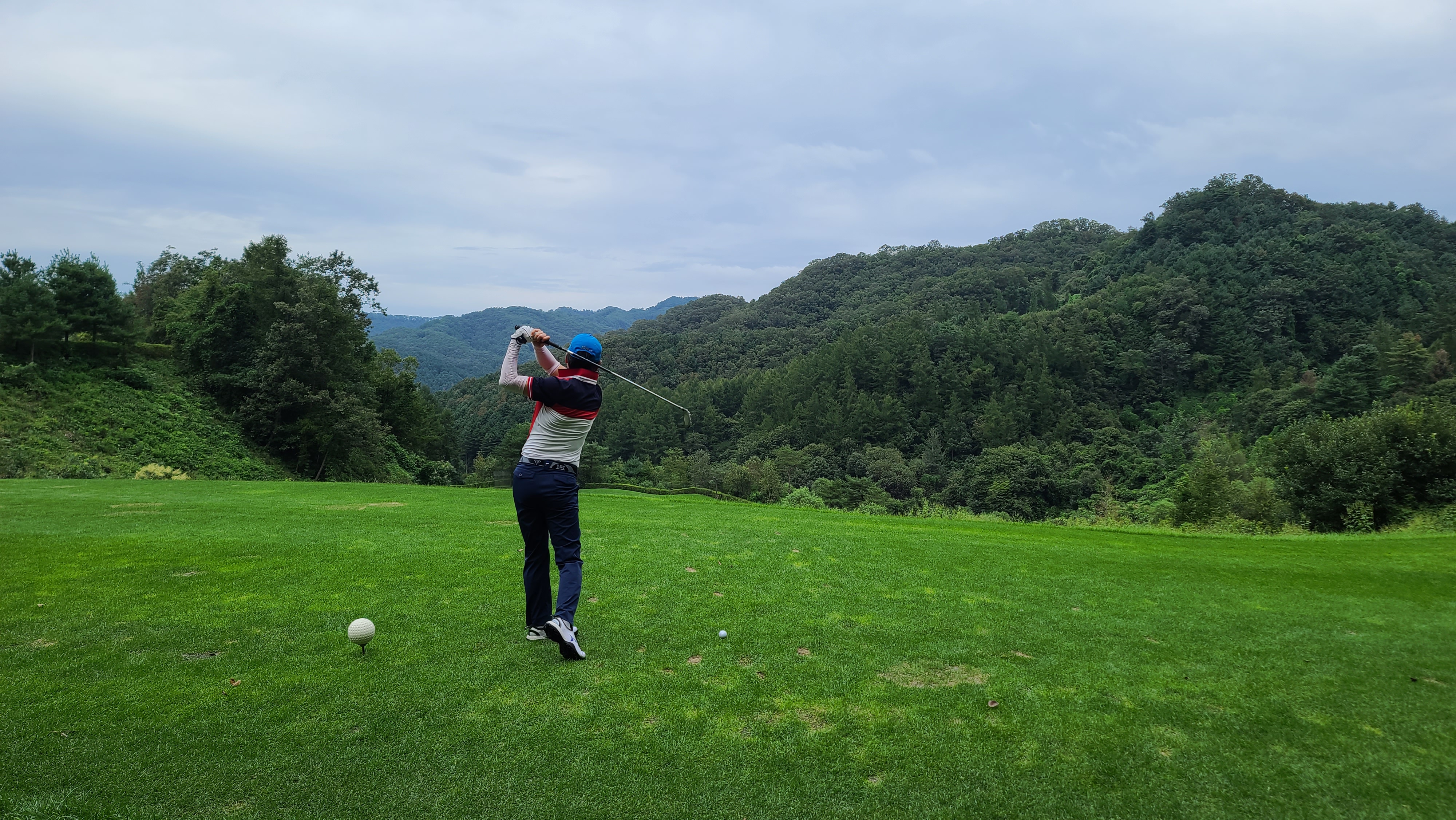 전반 마지막홀 무리하지 않고 가볍게 티샷을 날려주니 정확하게 가운데로 날아가는 모습입니다. 역시 골프는 욕심을 부리지 않고 힘을 뺄수록 잘 되는 스포츠가 아닐 수 없습니다.