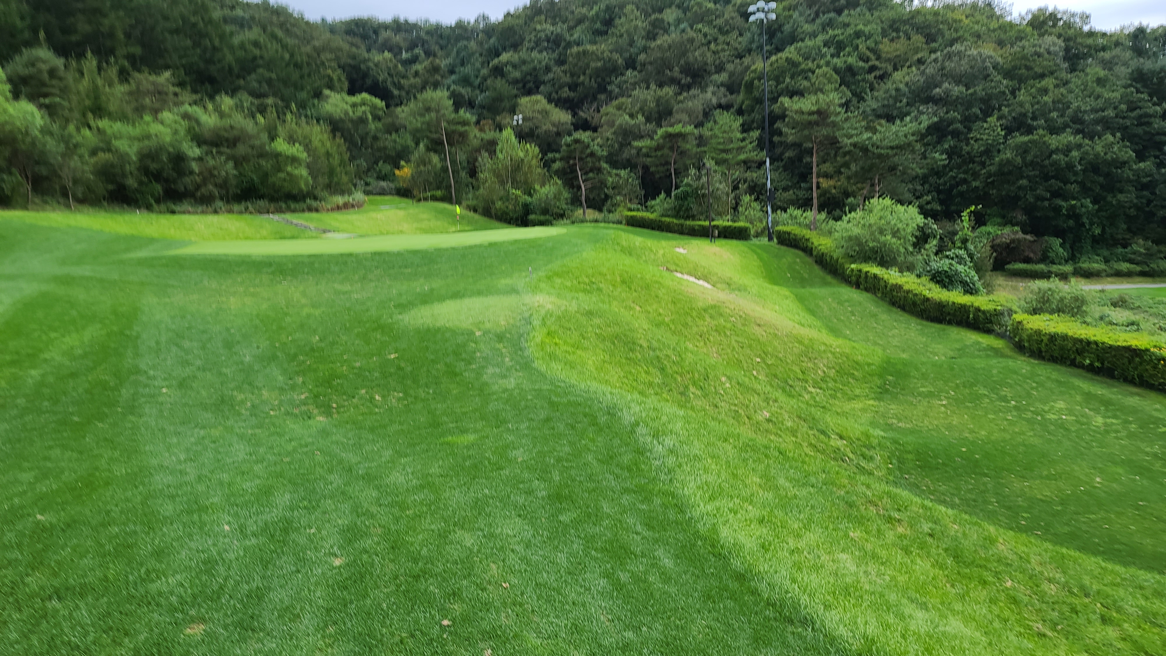 오너스CC는 그린이 넓어 쉬운 골프장으로 생각할 수도 있으나 실제 플레이를 하면 사진과 같이 매우 어려운 경사들이 곳곳에 산재해 있는 것을 느낄 수 있습니다. 또한 전체적인 언듈레이션도 좌측 또는 우측을 향하는 것이 기본적이라 공이 발보다 높거나 아래에 있는 경우가 다수로 플레이어에 따라선 매우 어렵게 느껴질 수도 있는 골프장입니다.