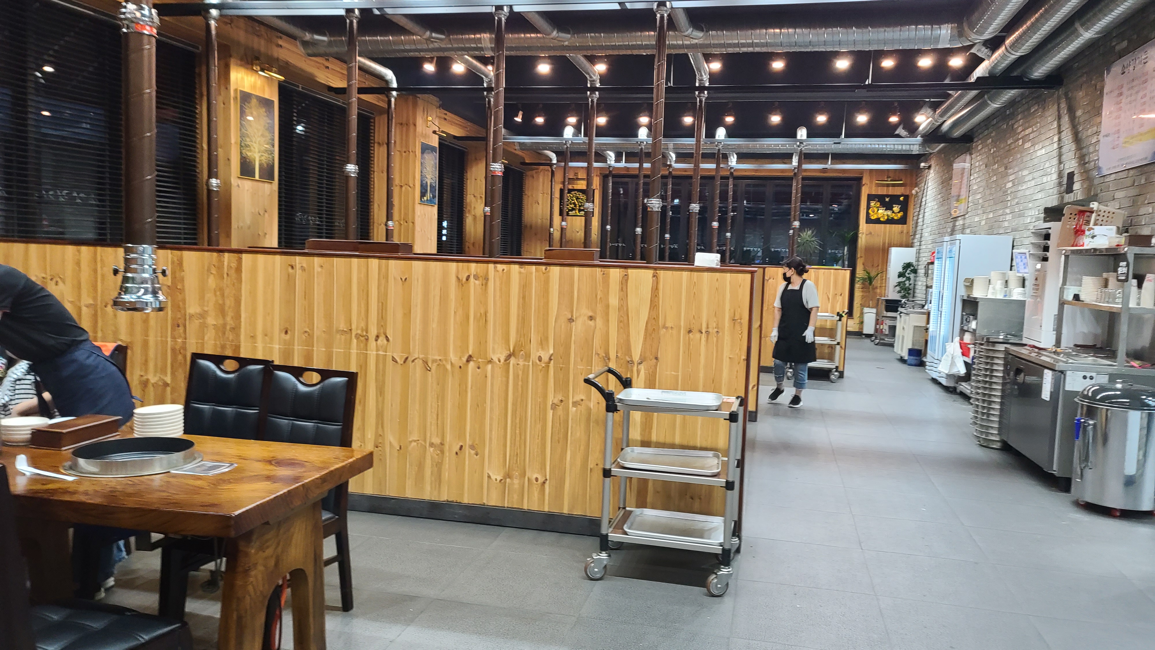 식당 내부로 들어가서 살펴봅니다. 100명 이상이 앉을 수 있는 꽤 넓은 공간이지만 룸과 파티션으로 나뉘어져 있어 너무 시끄럽지는 않고 모임을 가질수도 있는 장점을 가지고 있는것이 보입니다.
