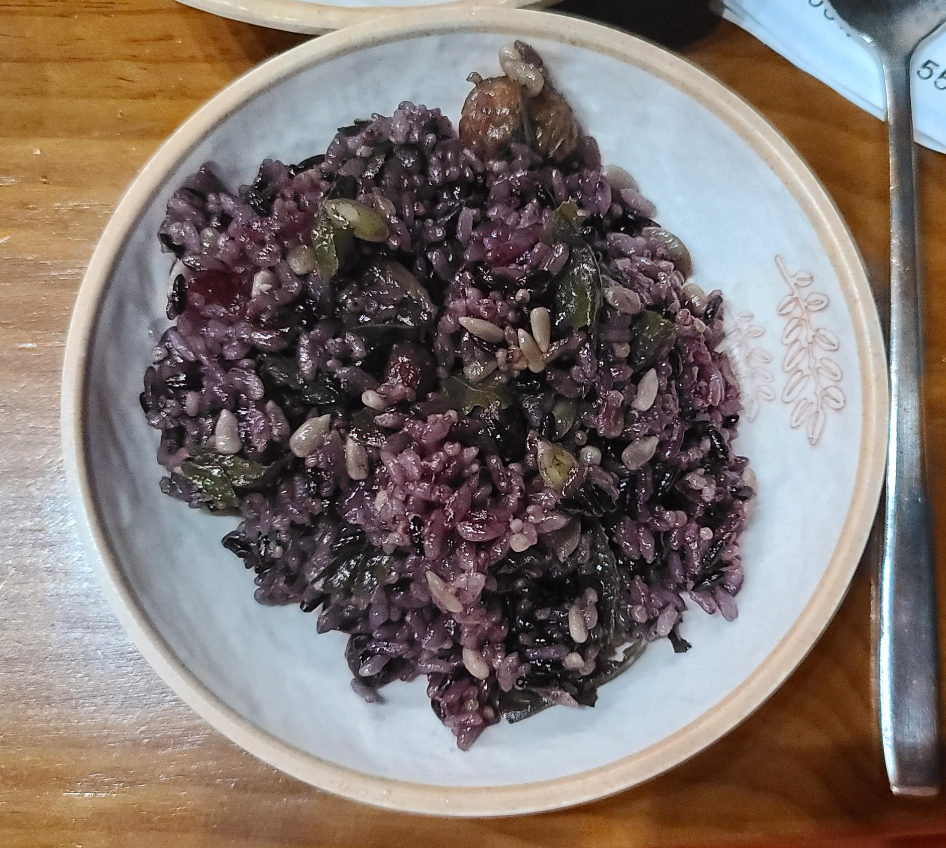 소양강 가든에서 오리더덕구이를 주문하면 국물로 오리탕을 서비스해주십니다. 맛있게 끓은 오리탕에 녹차약밥을 곁들여서 먹어보니 시원한 국물맛에 녹차약밥의 감칠맛이 어우러져 최고의 맛을 자아냅니다. 녹차약밥에는 비싼 무화과도 들어가 있어 이질감이 느껴지지 않은 단맛이 씹을수록 올라오고 있습니다.
