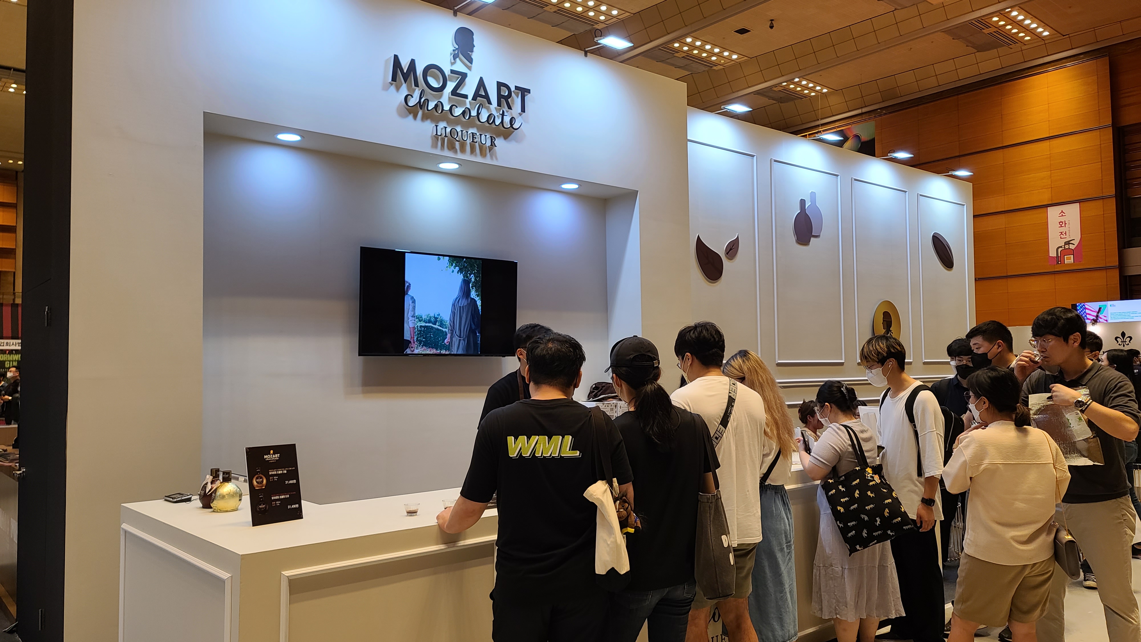 조금옆을 보자 모짜르트 초콜렛 리쿼 제품의 부스가 보이고 사람들이 상당히 줄을 서있는 모습이 보입니다. 다가가서 살펴보니 초콜릿과 크림을 넣은 리큐르로 여성손님들에게 상당히 인기가 많았으며 맛을보니 알코올 맛이 전혀느껴지지 않은 리큐르맛이 참으로 특이했습니다.