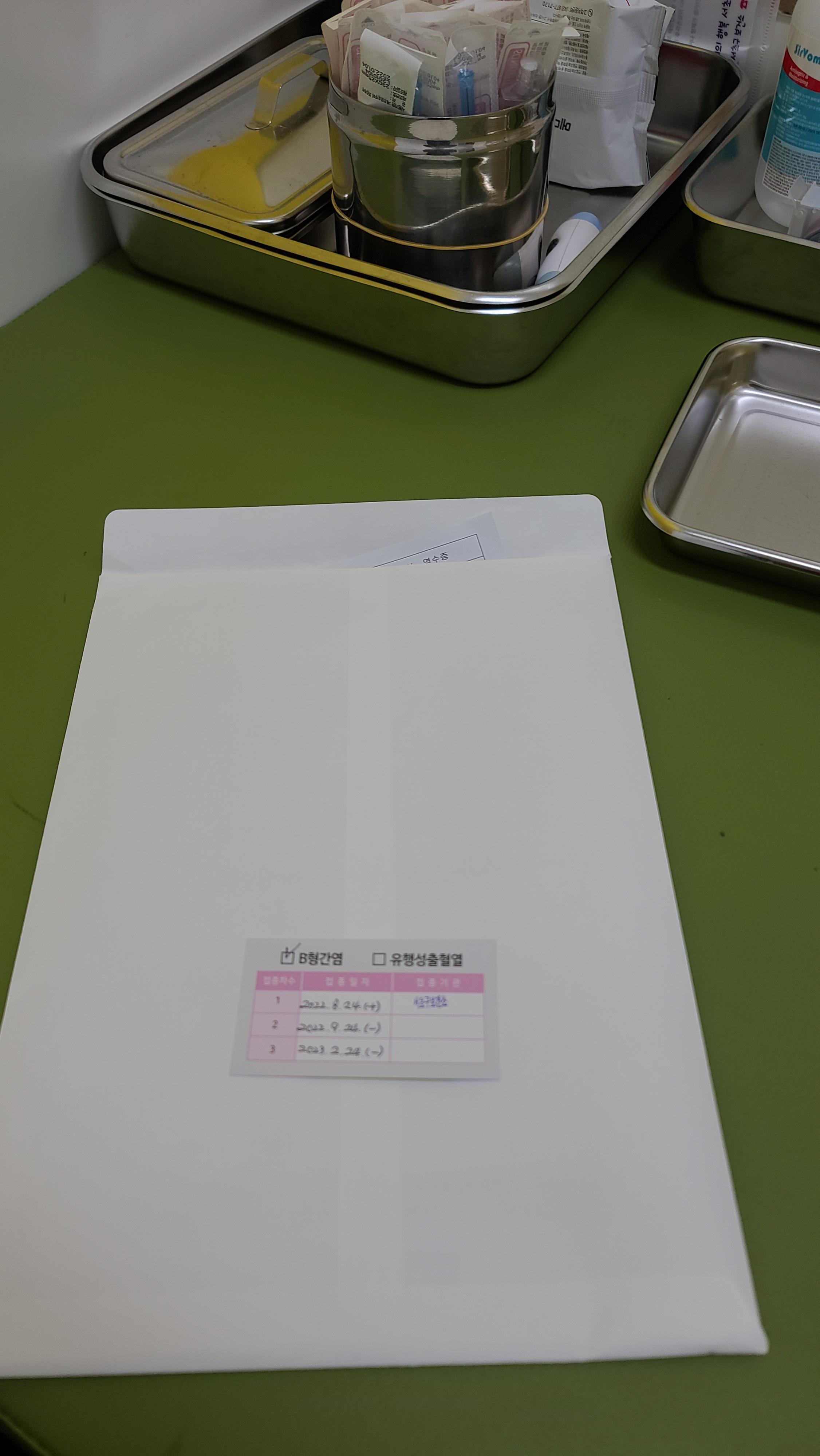 결제를 하고 나면 보건소에 마련된 예방접종실로 이동하여 의사선생님과 문진을 나누게 됩니다. 오늘의 몸컨디션은 어떤지 질환은 없는지 여러가지를 진찰하게 되며, 가장 중요한 B형 간염 항체 음성 결과지를 제출하여야 합니다.