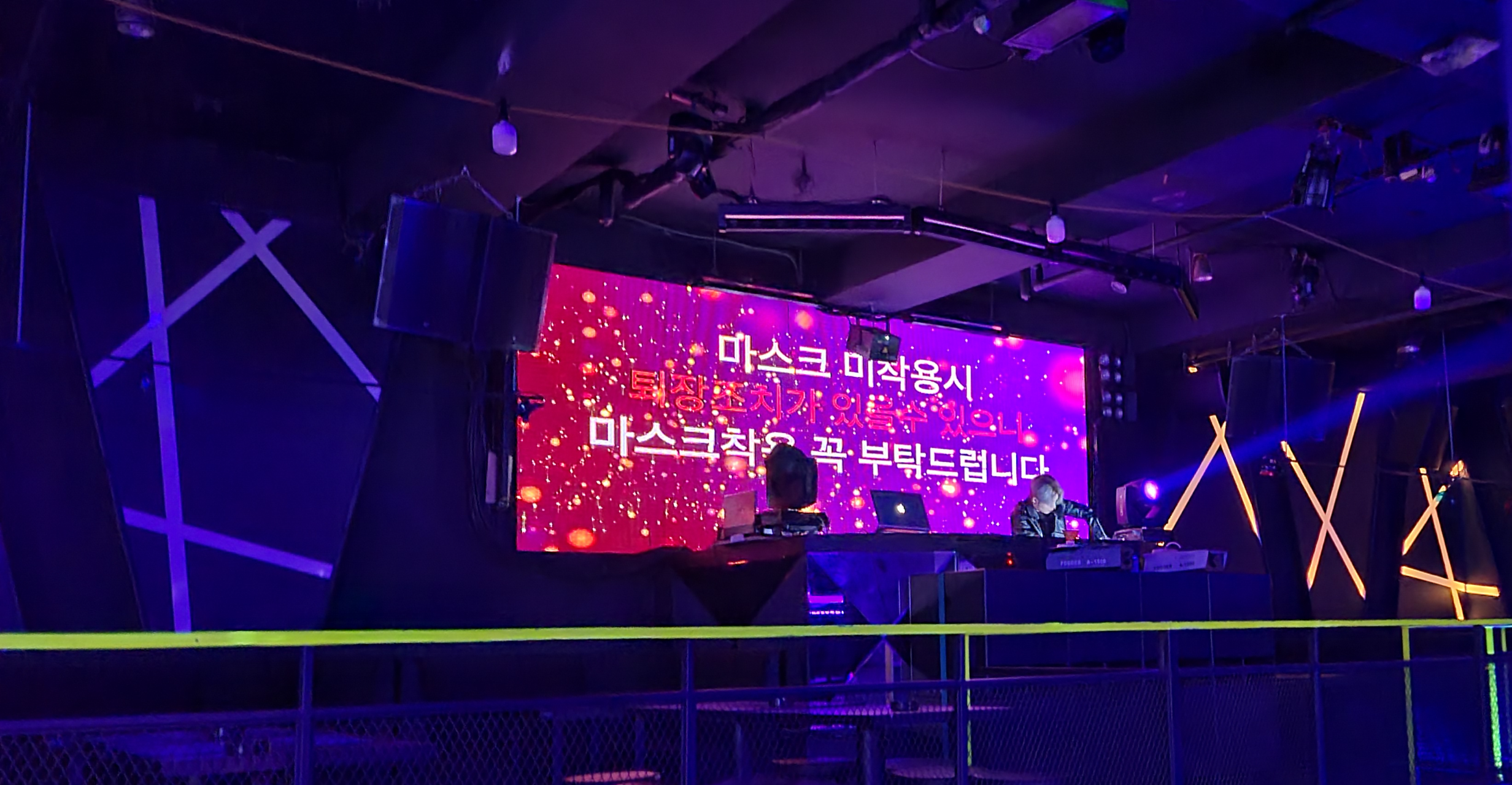 어느정도 사람들이 모여들면 DJ님의 시작합니다 선언과 함께 댄스파티 타임이 시작됩니다. 선곡은 일렉이 주를 이루며 가운데 마련된 스테이지에 사람들이 나가 점점 광란의 도가니에 빠져들게 됩니다.