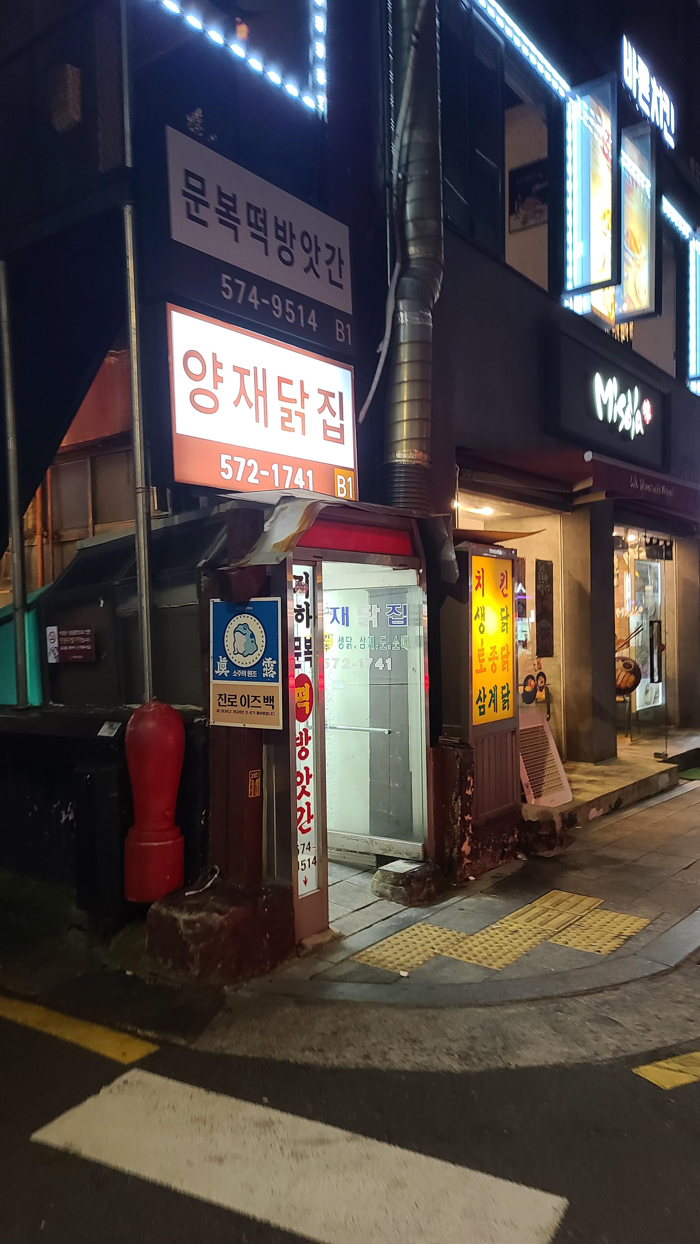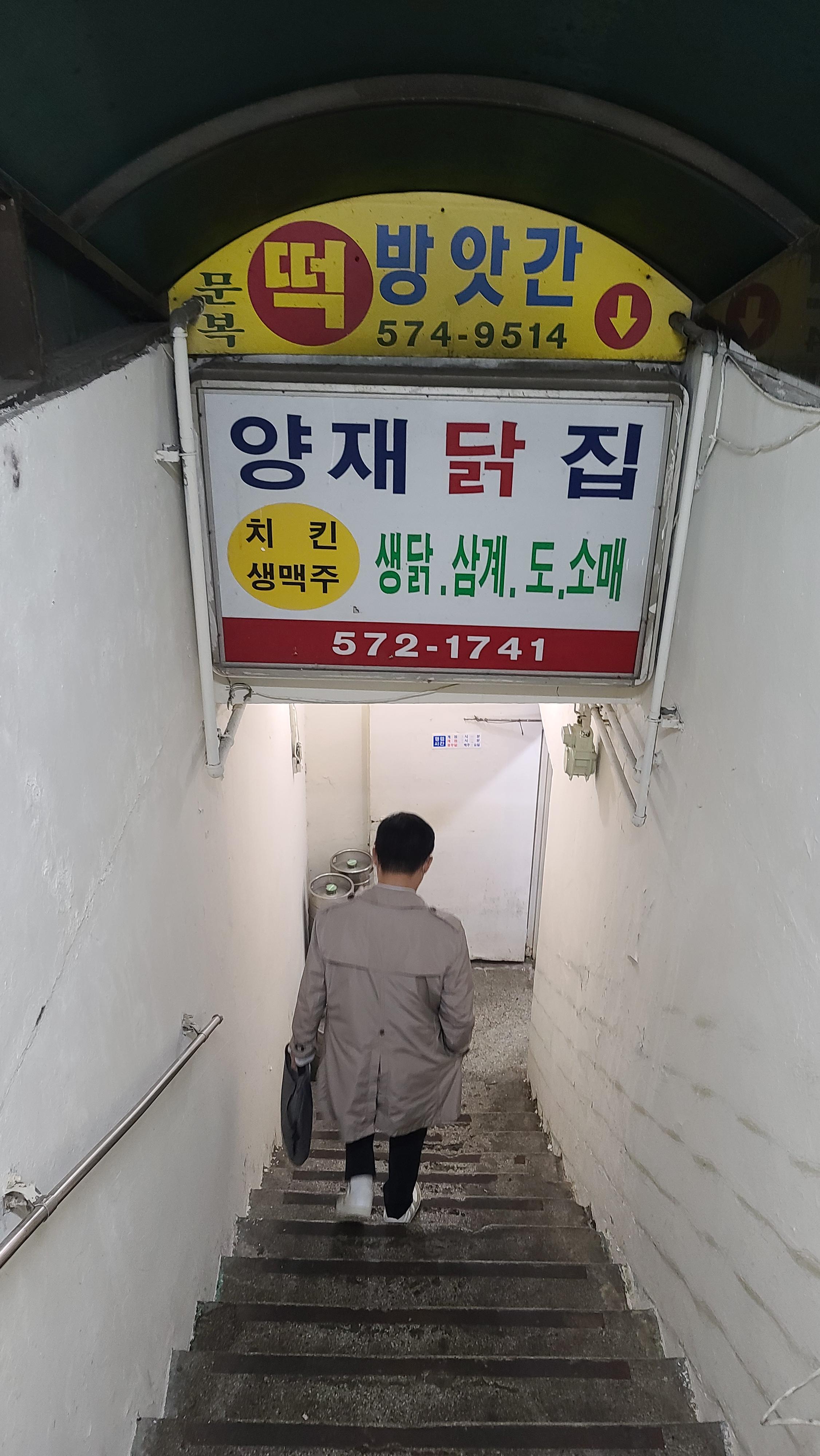 양재역 부근 서울 3대 치킨으로 불린다는 양재닭집이 있다는 소문에 방문을 해보기로 합니다. 도착해서 가게를 살펴보니 지하에 위치해있고 허름한 간판과 입구가 과연 맛집이 맞나하는 생각이 저절로 들게 됩니다만 이런곳인데도 소문이 났다면 정말 치킨에 무슨 비법이 있겠구나 하는 생각에 들어가보기로 합니다.