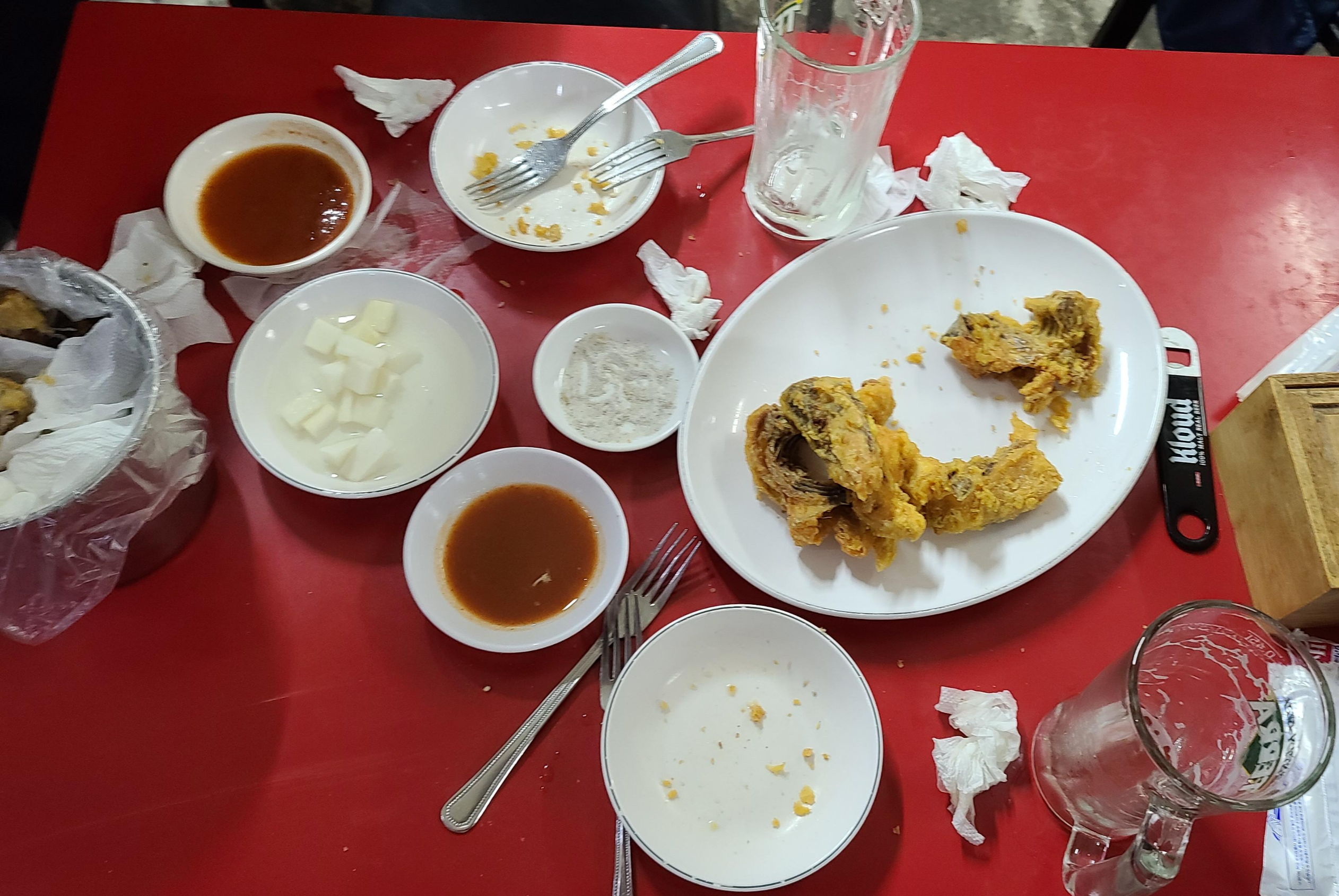 눈으로만 봐서는 맛을 느낄수가 없는법 닭다리를 잡고 과감하게 뜯어보며 맛을 음미합니다. 흐음... 환상이 너무 컷던탓인가 무언가 와닿는 것이 없습니다. 맛에대해서 다른 수식어를 붙여보고 싶지만 그냥 일반 후라이드 치킨 그 맛입니다. 튀김옷에 무언가 특별한 비법 혹은 염지의 황금비율, 소스의 차별화 서울 3대 통닭이라고 불릴만한 아무런 것도 느껴지지 않는 일반 후라이드 치킨입니다.