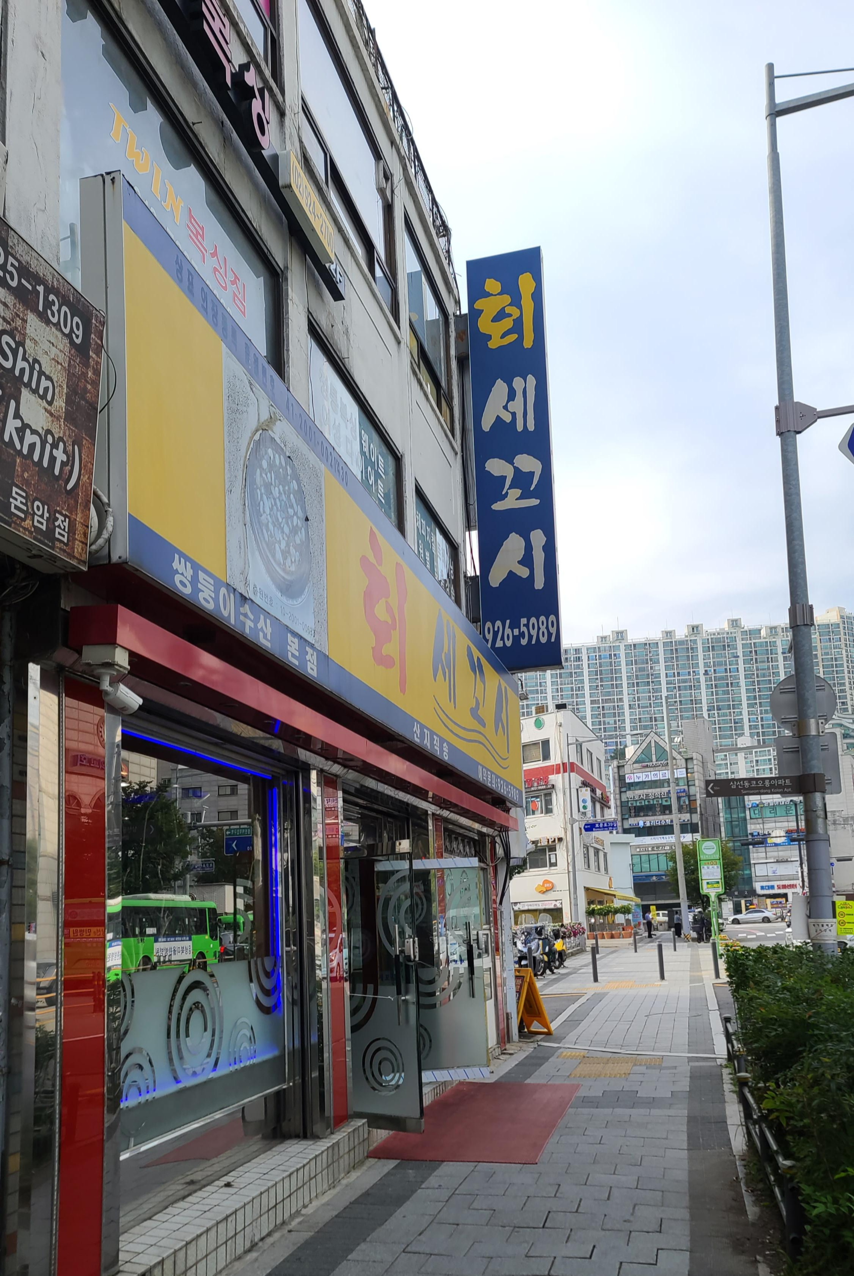 산책을 열심히 하다보니 배가 고파지는 것이 느껴져 주변에서 무엇을 먹을까 고민하다 유명한 쌍둥이 수산 간판이 보여 세꼬시의 식감과 고소한맛이 상상이 되어 들어가보기로 합니다.