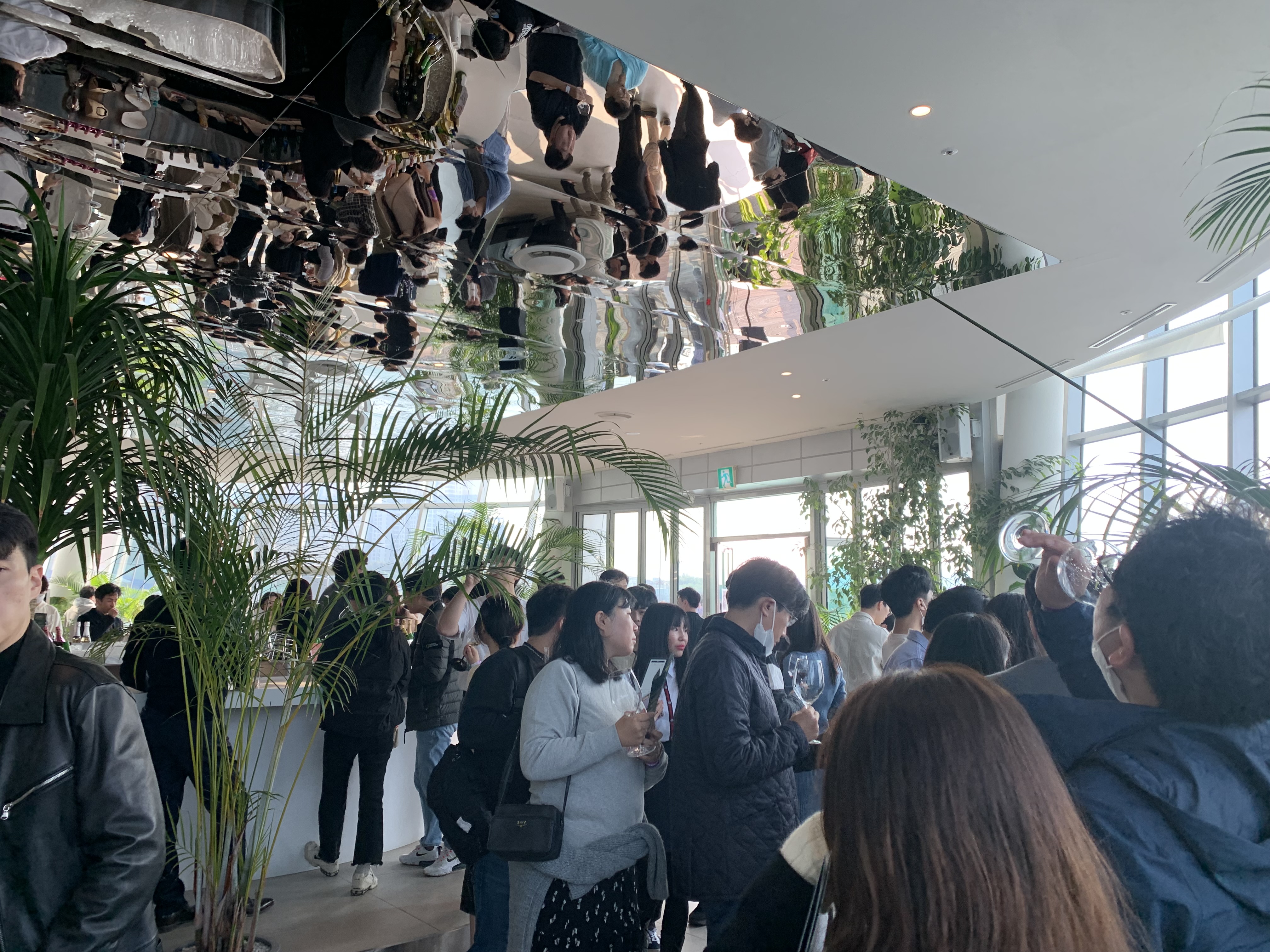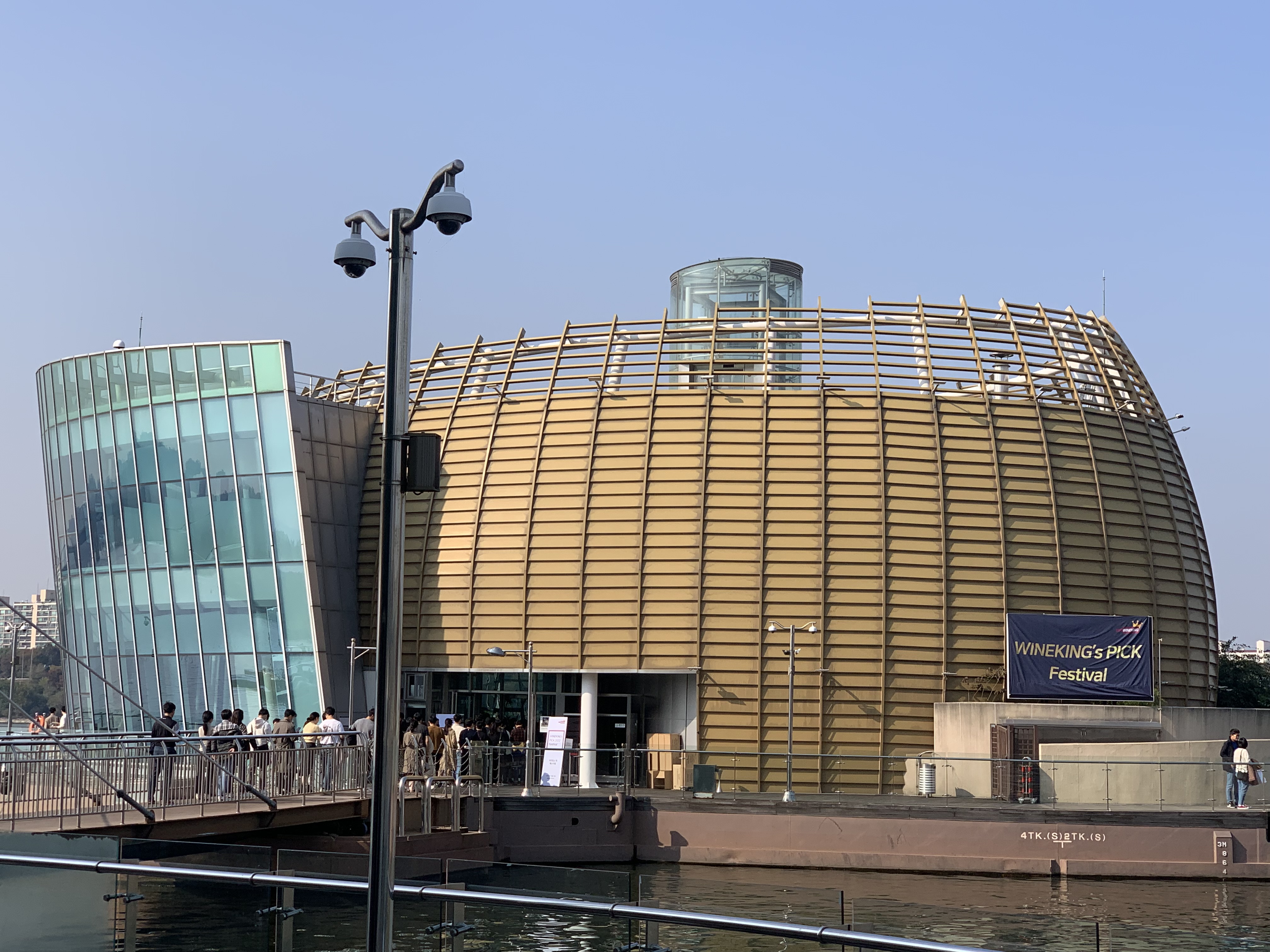 전세계 1위 와인 유튜버 와인킹이 선정하는 41종의 와인을 시음하는 자리가 있어서 어렵게 자리를 구해 가보기로 합니다. 한강 세빛둥둥섬 무드서울에서 열리는 이번 행사에 이른 시간임에도 벌써부터 사람들이 줄을 서있는 모습을 보게 됩니다. 건물 외벽에는 Wine King's Pick Festival 이라고 행사명이 적혀있습니다.
