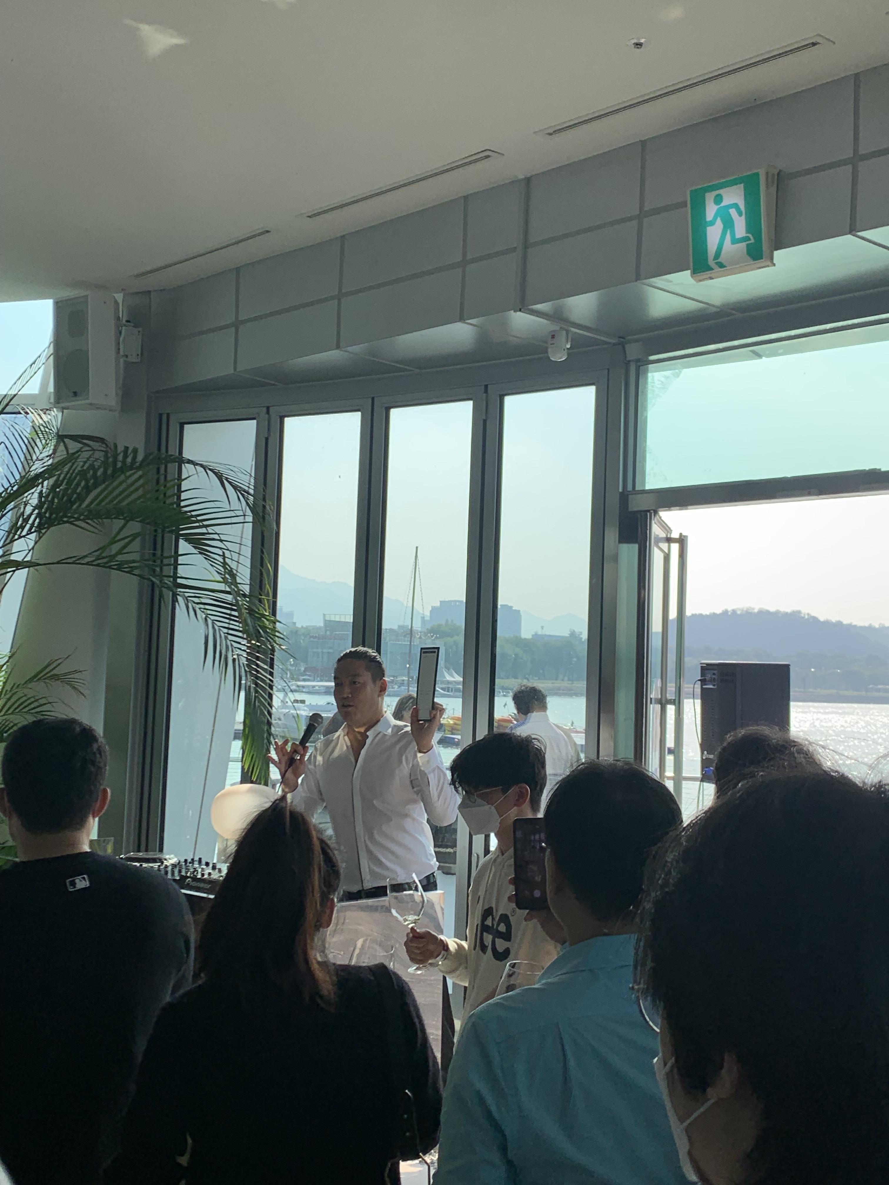 와인을 테이스팅하고 구경하고 분위기를 느끼는 와중에 오늘의 주인공 와인킹님이 등장하여 안내사항과 오늘 페스티벌의 개요에 대해서 자세하게 안내해주고 계십니다. 실물로 보니 역시 격투기 선수를 연상케하는 체구의 아우라를 느끼게 됩니다.