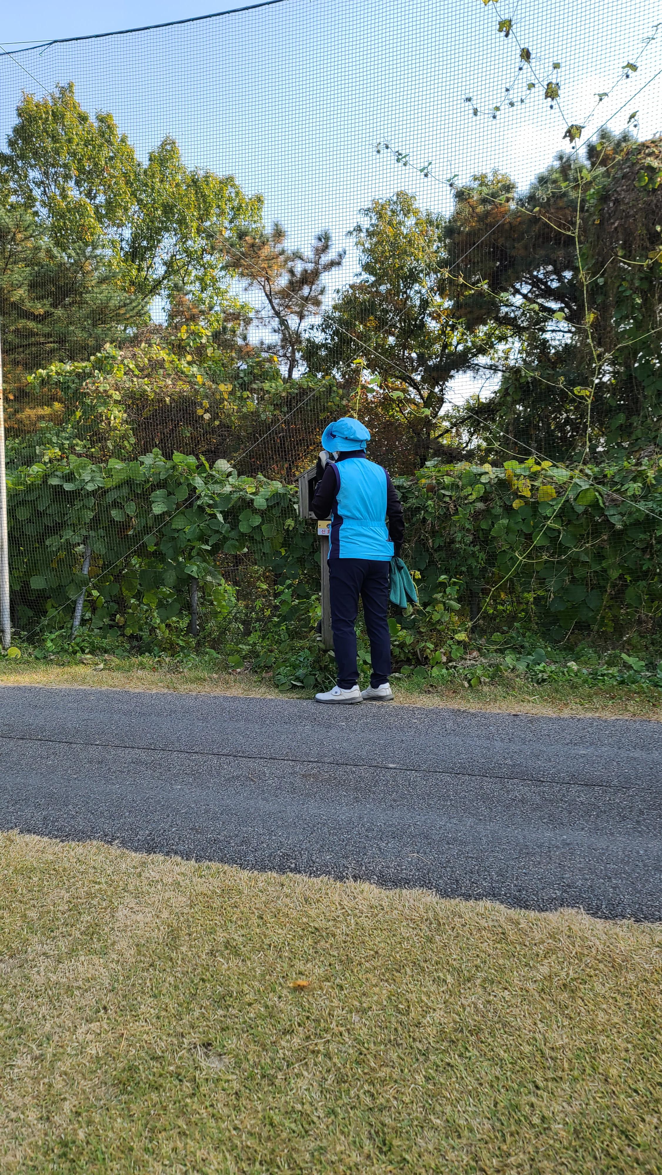 마지막 홀이라 그런지 묘목을 남수원CC 글자대로 깎아놓은 조형물도 감상하며 재미있게 플레이를 합니다. 캐디분께 먹을것을 말씀드리자 페어웨이 중간에 설치된 전화에서 주문을 하는 모습이 인상적입니다.