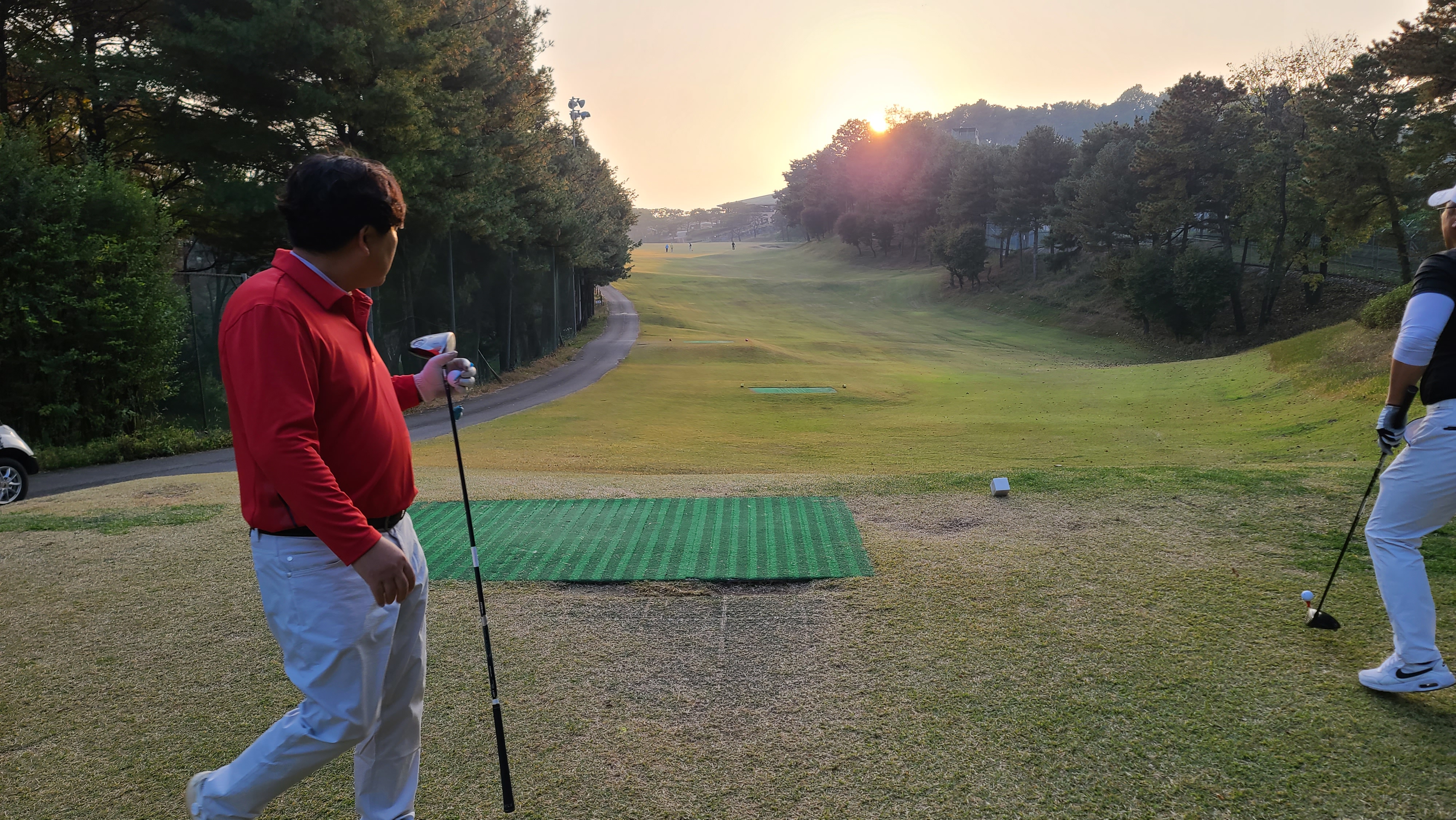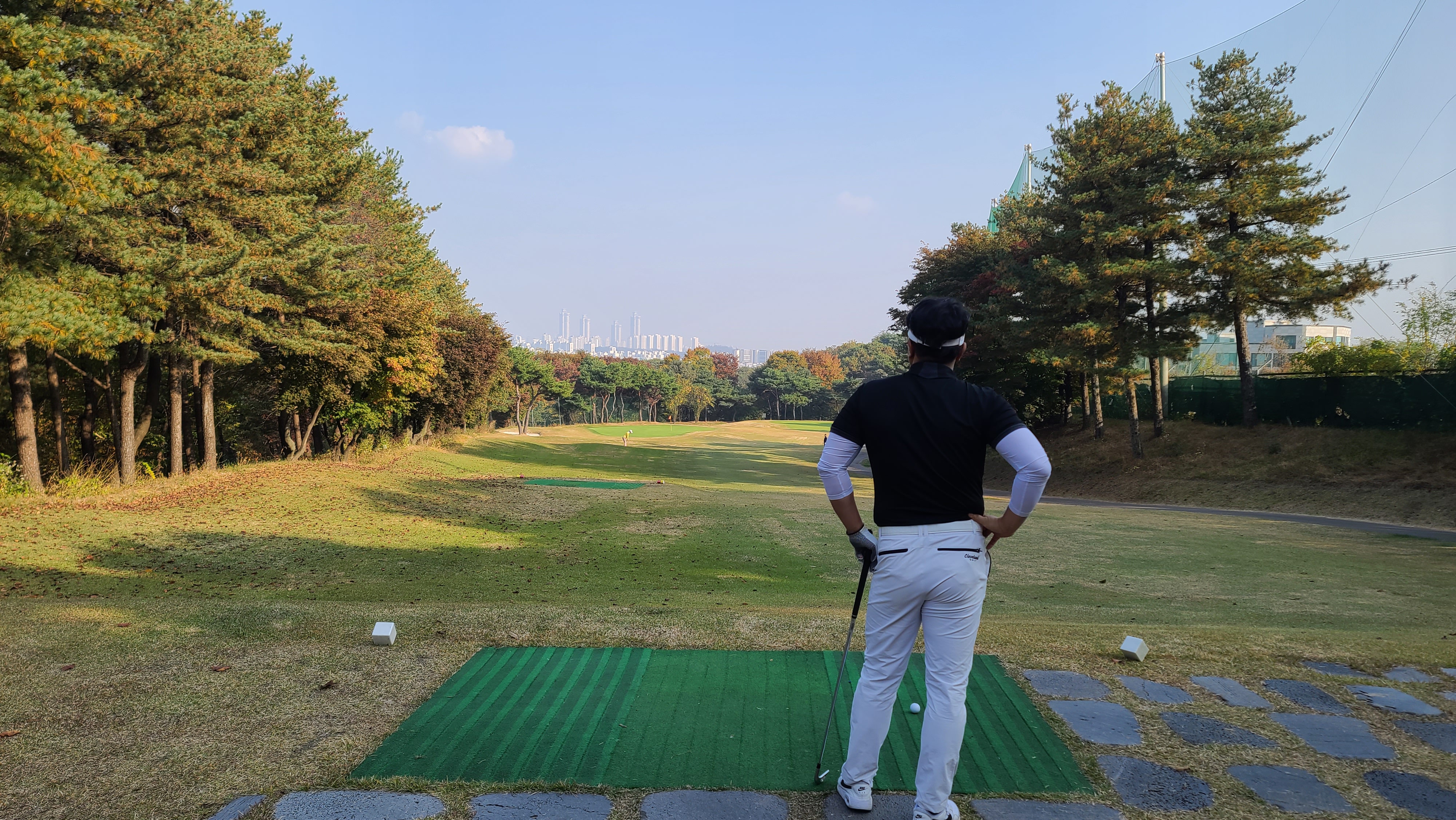본격적인 라운딩의 시작 백두코스부터 시작합니다. 339m 거리의 파4홀로 수원시 전경이 내려다 보이는 엄청난 내리막의 코스입니다. 장타자의 경우 그린 초입까지 보낼 수 있을 정도로 그린까지 내리막이 구성되어 있으니 조금 나중에 티샷을 하는 것이 좋습니다. 경치를 감상하며 가벼운 마음으로 티샷을 한다면 매우 좋은결과를 얻을 수 있는 홀입니다.