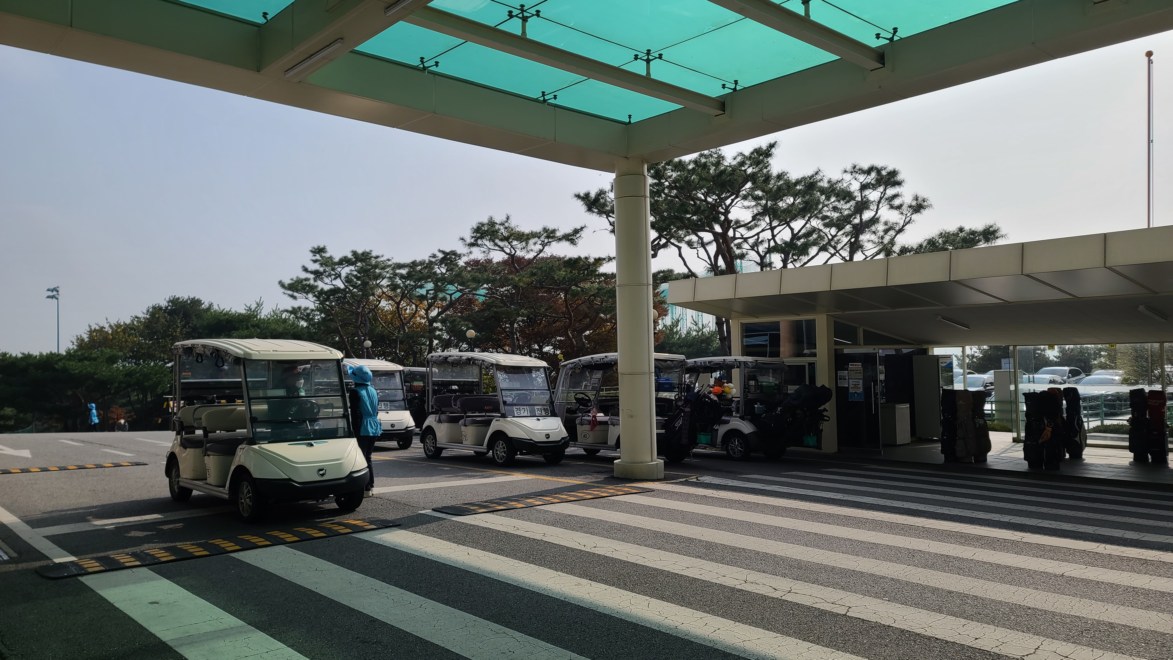 화창한 가을 남수원CC 군인 체력단련장에서 라운딩 기회가 있어 방문해봅니다. 골프연습장 옆으로 조그마한 클럽하우스 건물이 눈에 들어옵니다. 아래쪽에 주차를 하면 카트가 위쪽의 클럽하우스로 데려다주는 친절한 서비스를 하고 있습니다.