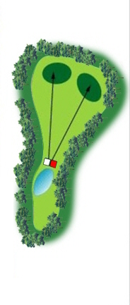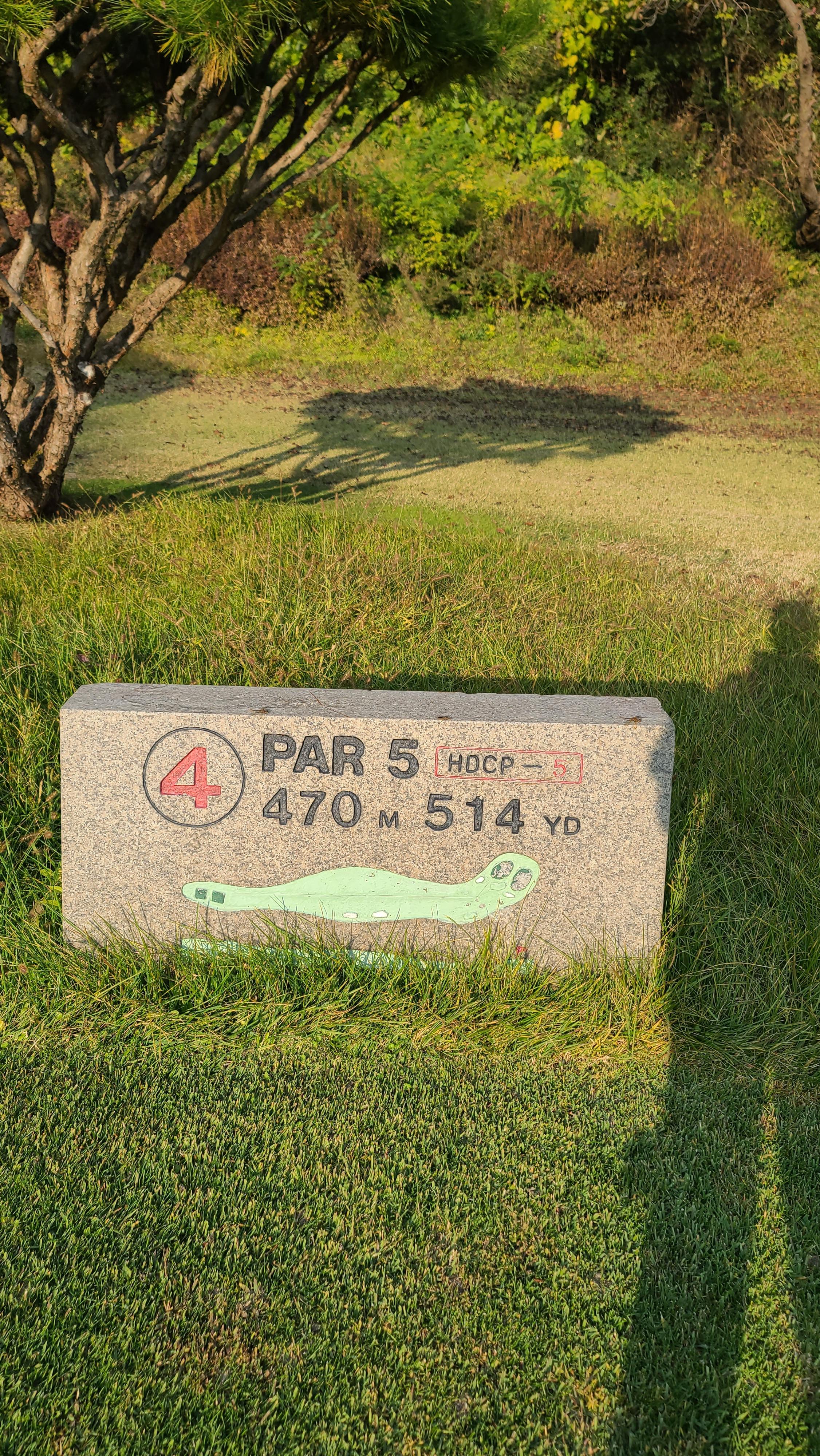 백두 4번 377m 거리의 내리막 파4홀입니다. 그린 한가운데 나무가 위치한 인상적인 홀이며 슬라이스 방향에는 OB지역으로 그물망이 쳐져있고 옆의 홀 세컨샷 지점이기 때문에 매우 위험하니 안정적인 드로우 공략이 필요한 곳입니다.