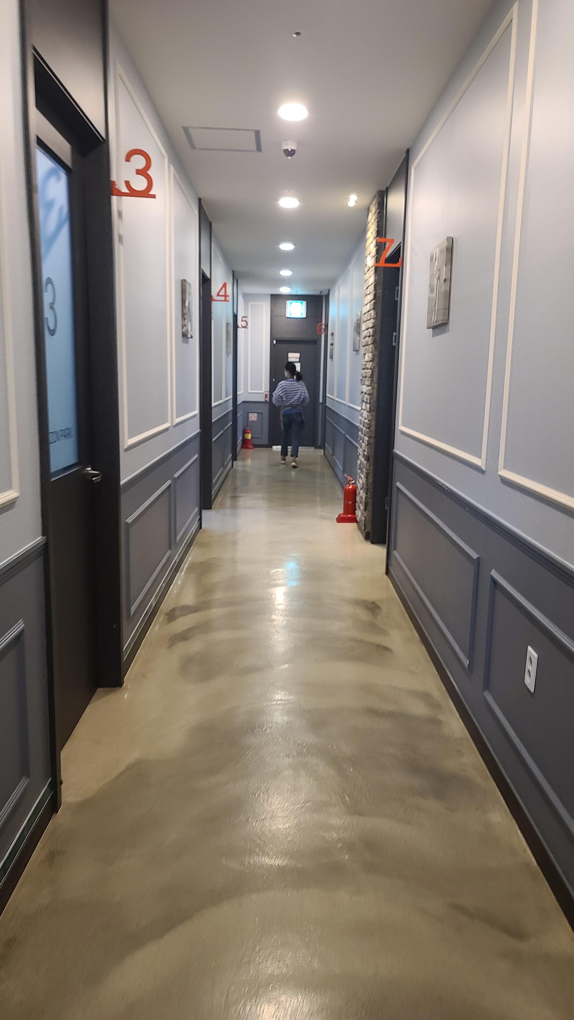 잠시기다리자 직원분께서 자리를 안내해주십니다. 카운터 앞자리에는 테이블이 있어서 대기하기 좋으며 방은 길게 뻗은 복도 양옆으로 7개 정도가 배치되어 있는 모습입니다. 신장개업을 한 곳인지 상당히 깔끔하게 관리되어 있는 모습입니다.