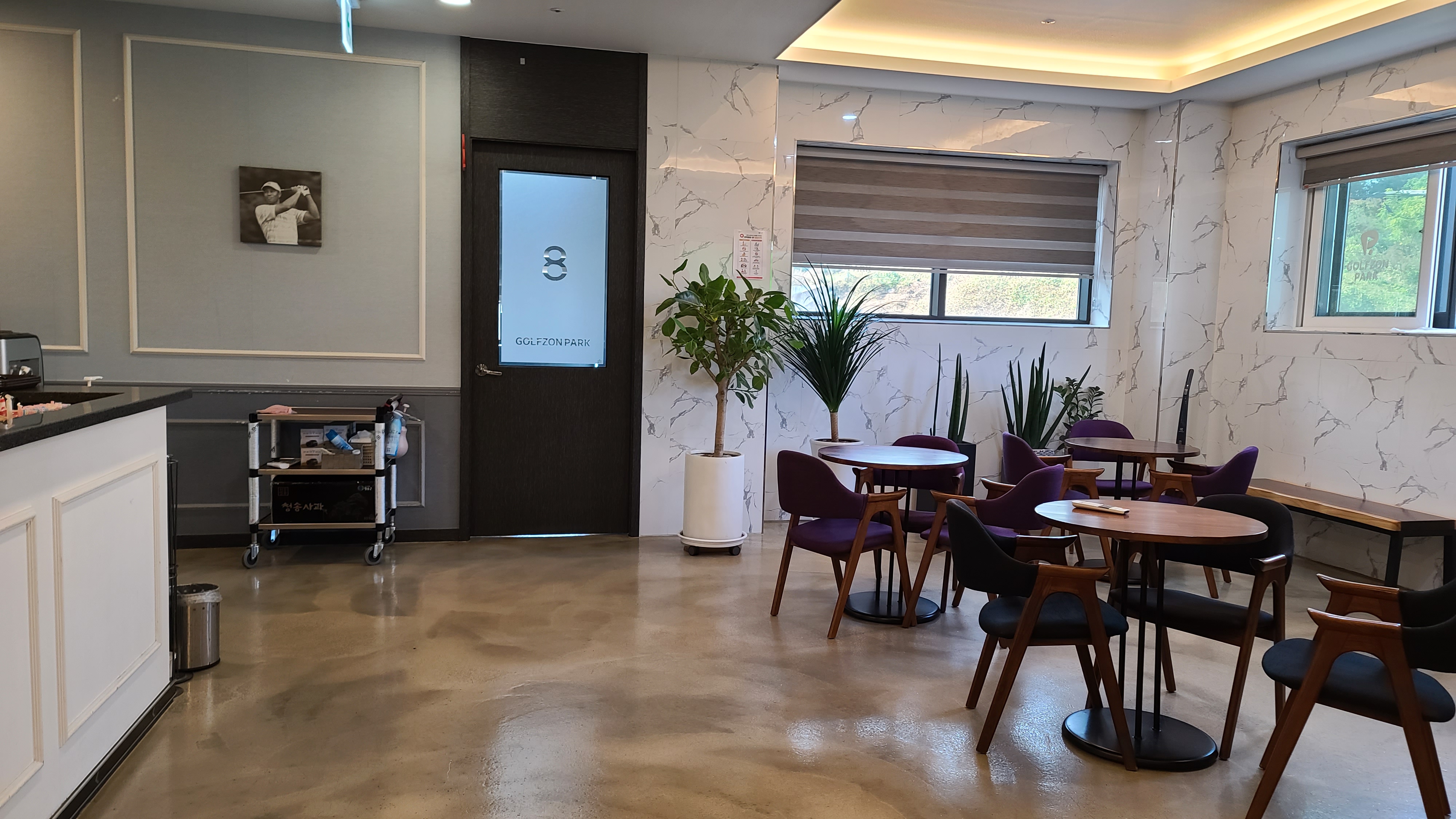 입구에 올라가서 배너를 살펴보니 새로워진 2022년형 골프존 투비전 플러스 시스템이 깔려있는 곳임을 알게 됩니다. 신형 투비전 플러스 시스템의 달라진점을 살펴보니 다각화된 모션플레이트를 이용한 언듈레이션 구현과 체중이동센서가 있어서 스윙시 체중이동이 어떻게 되는지 알 수가 있는 점입니다.