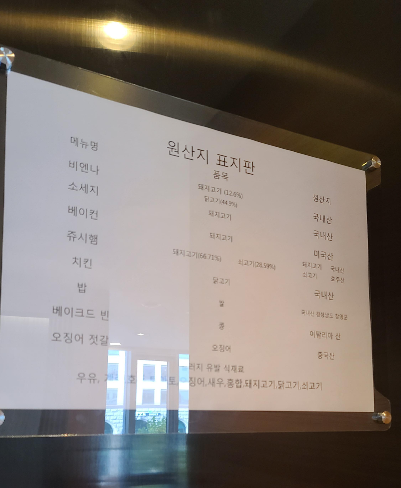 뷔페 입구에서 원산지표시도 꼼꼼하게 살펴봅니다. 국내산의 비중이 많은것이 안정감을 가져다 주고 있습니다.