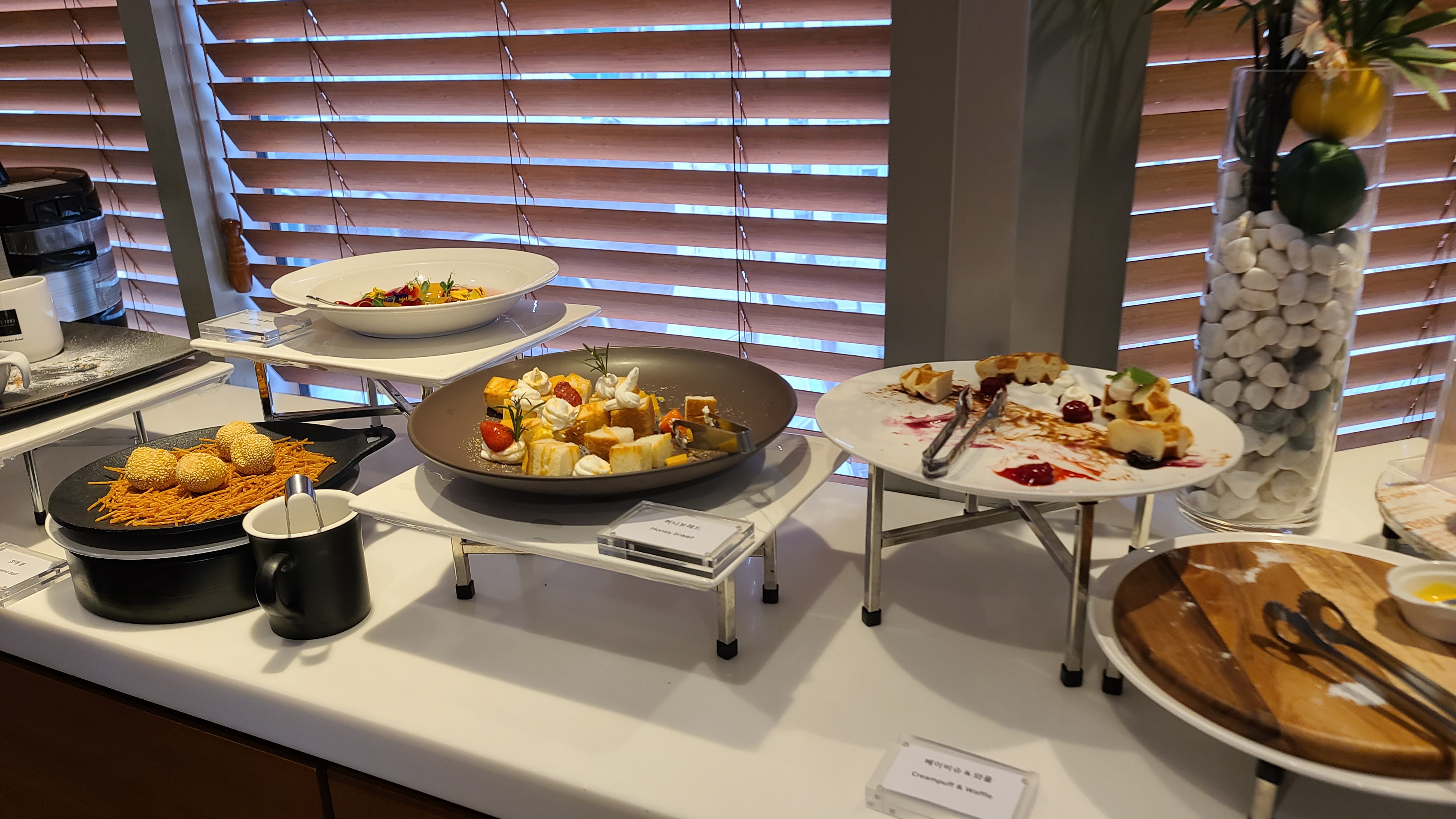 디저트 코너에서 와플과 참깨빵 등 다양한 메뉴도 경험해봅니다. 역시나 인기가 좋은 생크림은 빠르게 없어지고 잘 채워지지 않는 모습입니다.