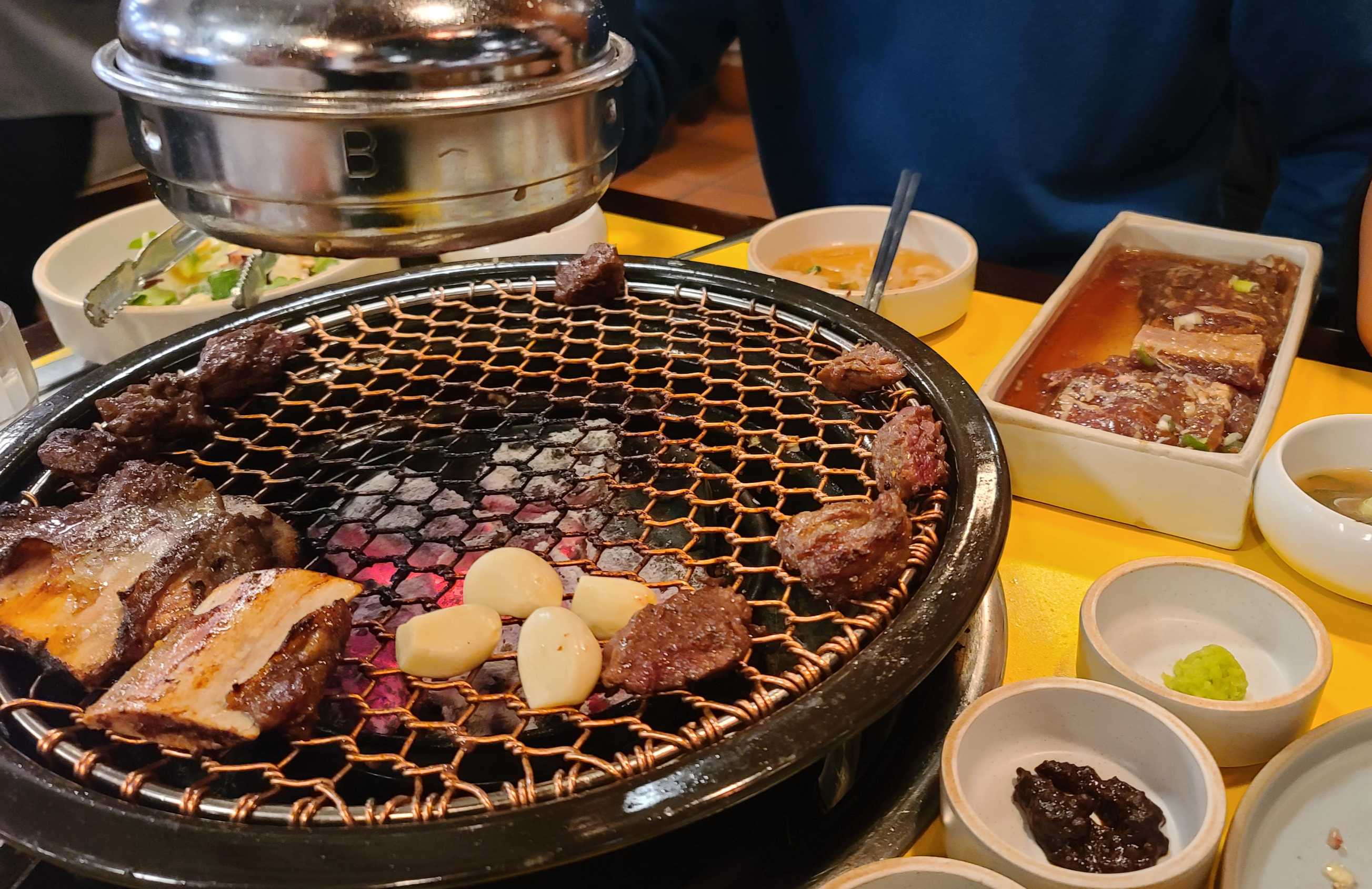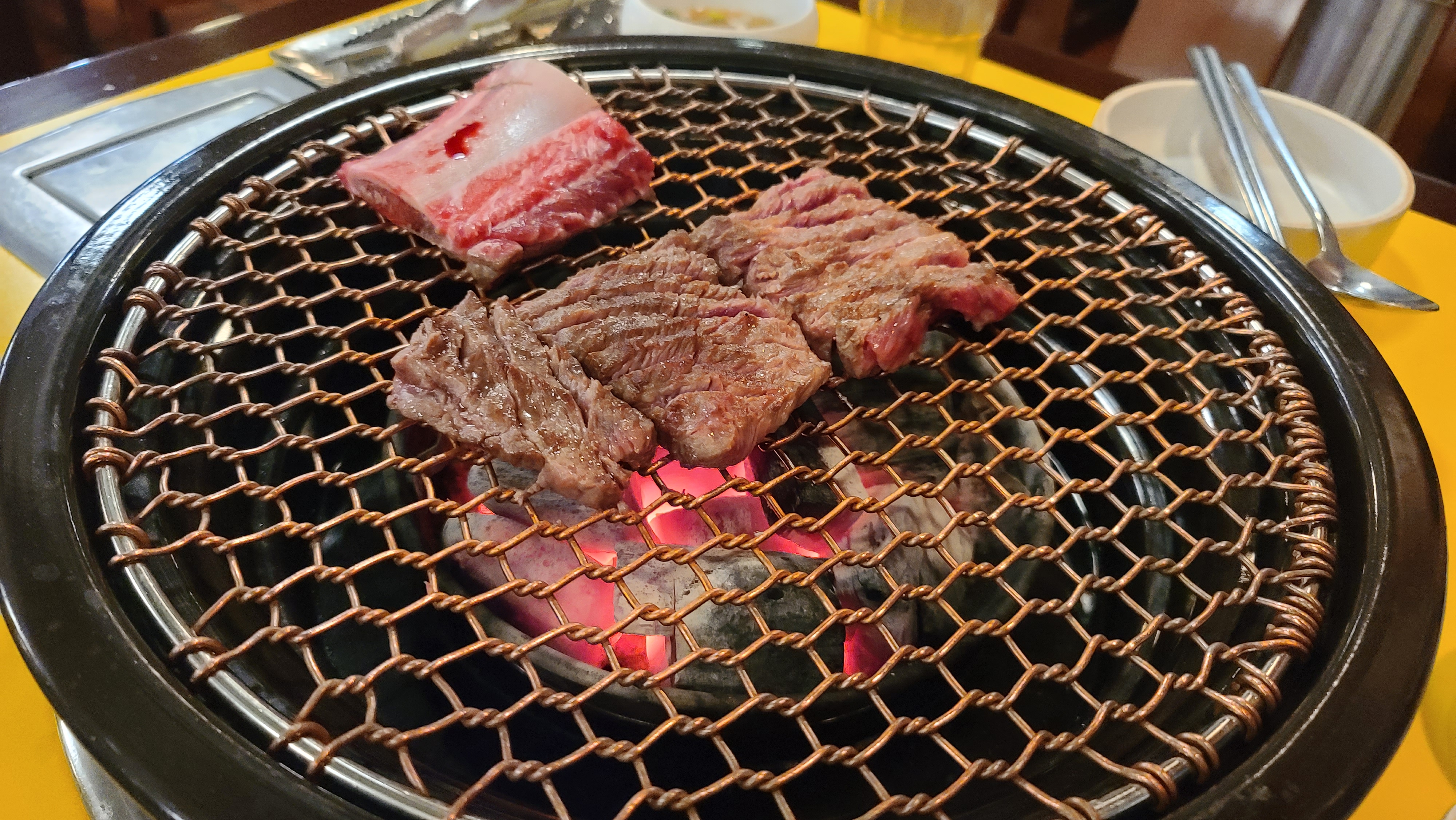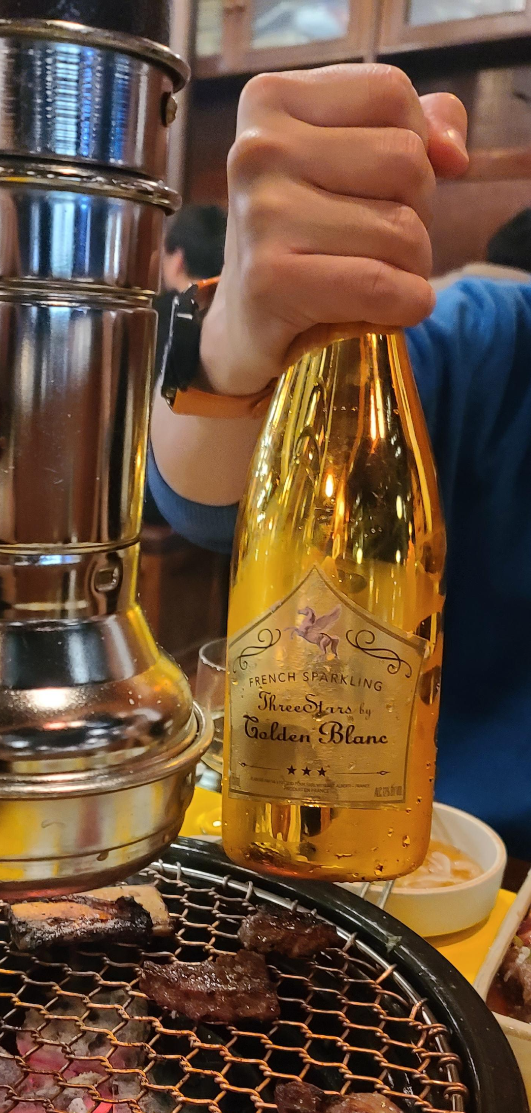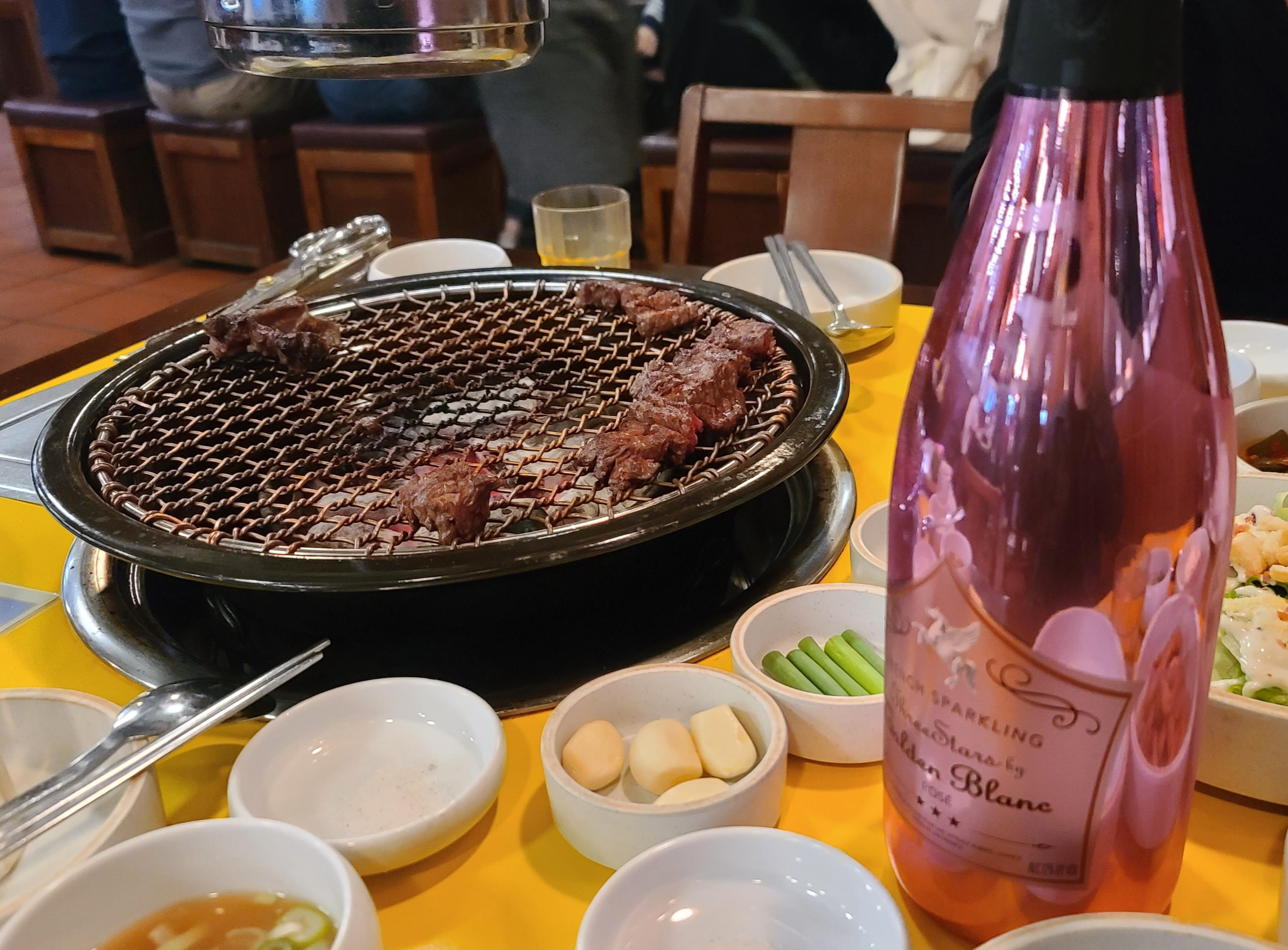 안창갈비를 구우니 좀더 지방기가 있어 고소한 맛이 일품이고 양념과 함께 오래도록 입안에 맛이 유지되는 것을 느낄 수 있습니다. 기름기가 많으니 샴페인의 산미와 더욱 어울리는 조합을 보여주고 있습니다. 자기가 원하는대로 술을 가져다 마실수 있는 콜키지프리 식당의 장점이 빛을 발하는 순간이 아닐 수 없습니다.