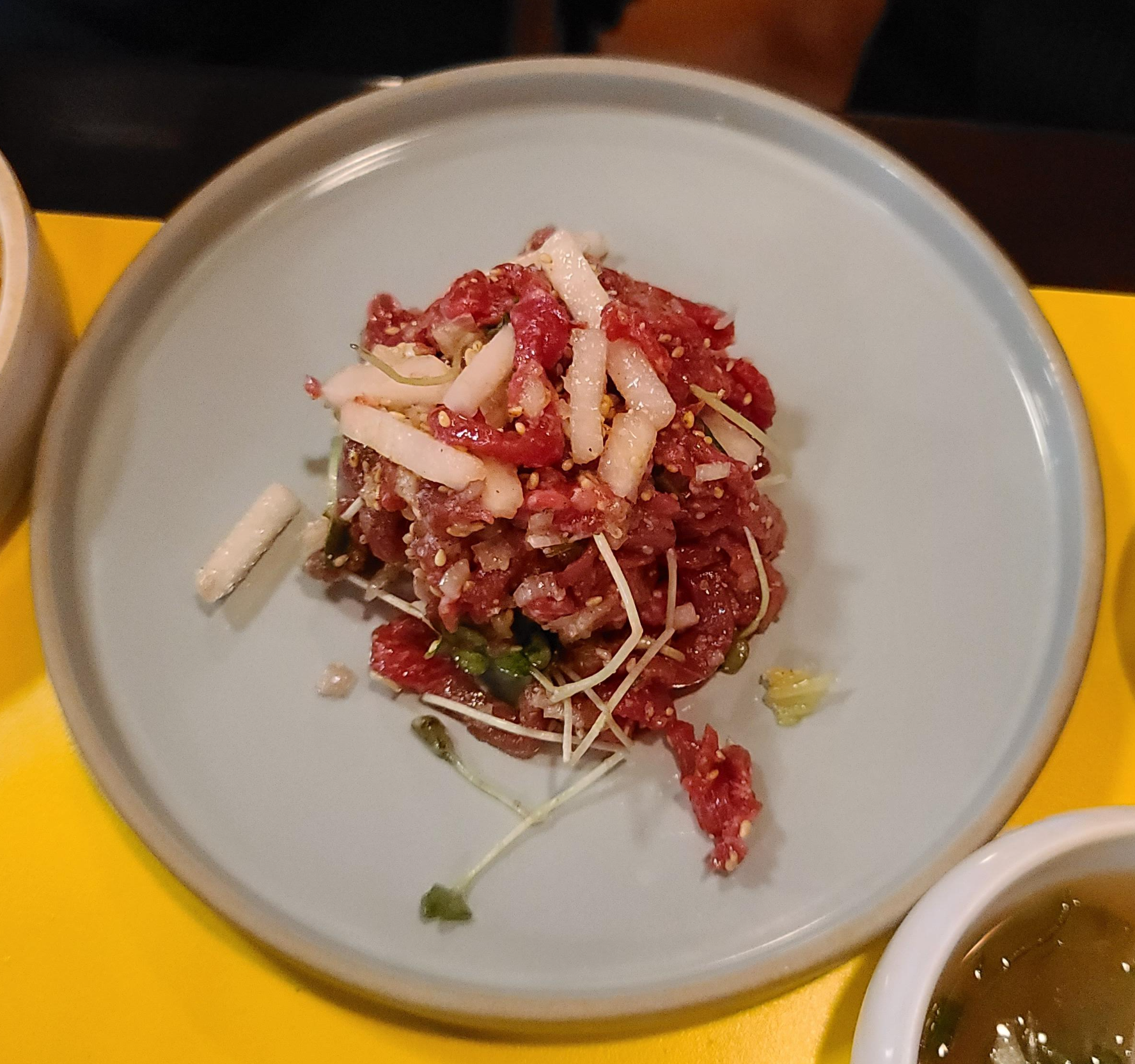 다음타자는 잠시 쉬어가며 입안을 새롭게 하는 의미로 육회를 주문해서 맛을 봅니다. 신선한 향과 냉동하지 않은 부드러운 식감 그리고 고소한 양념이 고기의 담백함과 만나 역시 천상의 맛을 자아내고 있습니다. 고깃집에서 이렇게 마음이 흔들리는 것은 참으로 오랜만입니다.