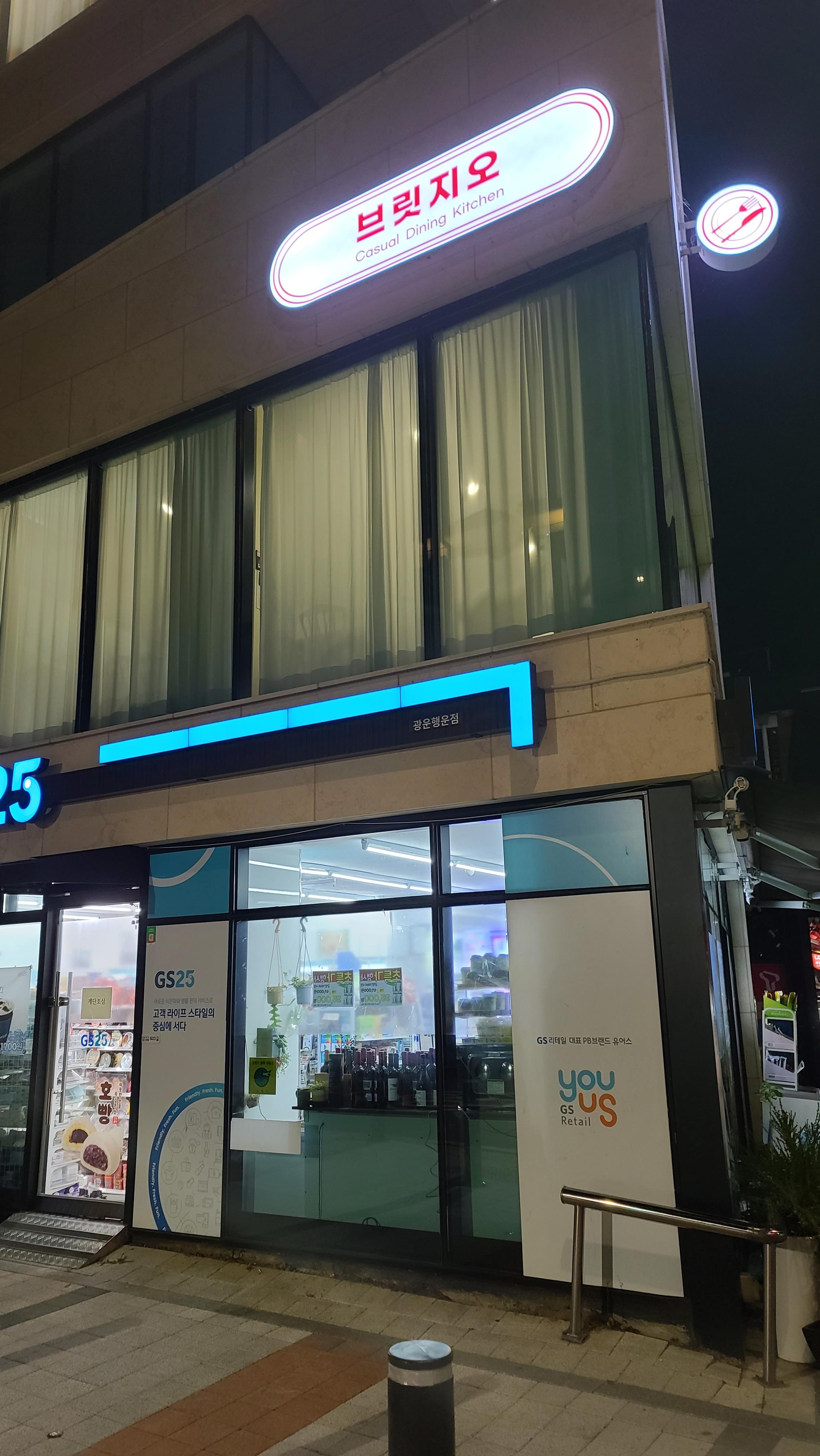 광운대 대학가 앞에서 약속이 있어 무엇을 먹을까 찾아보다가 근처에 제법 괜찮은 이탈리안 레스토랑 데이트 맛집이 있어 가보기로 합니다. GS25 2층에 위치해 있으며 브릿지오 간판이 눈에 들어옵니다.