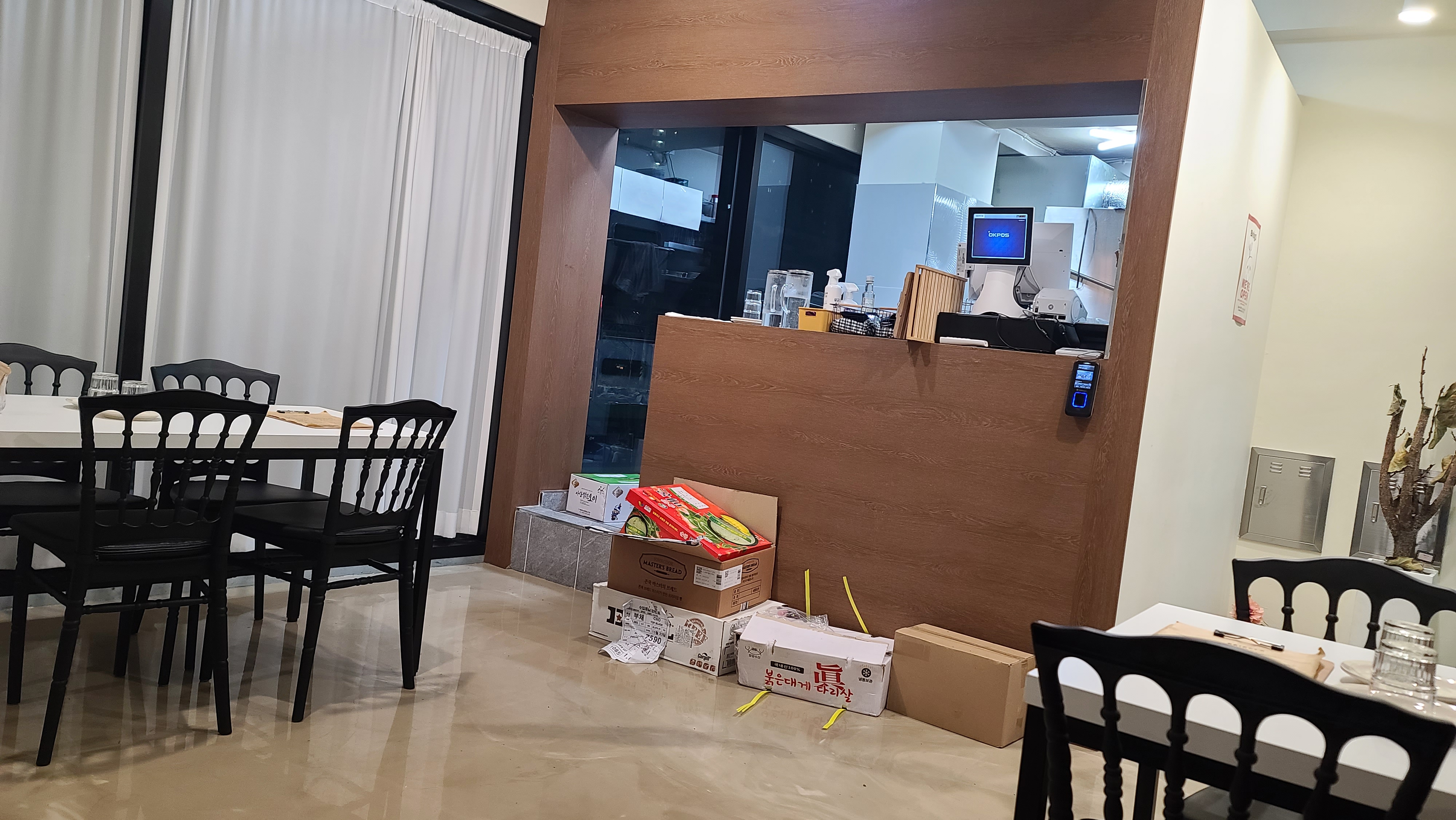음식이 조리되는 동안 가게 안을 살펴보니 개업을 한지 얼마되지 않아 박스나 짐들이 치워지지 않고 매장내에 비치되어 있는 모습이 보입니다. 아무리 신장개업이지만 이런것들은 손님의 분위기를 망칠수도 있으니 주의를 해야 할 것 같은 생각이 들게 됩니다.