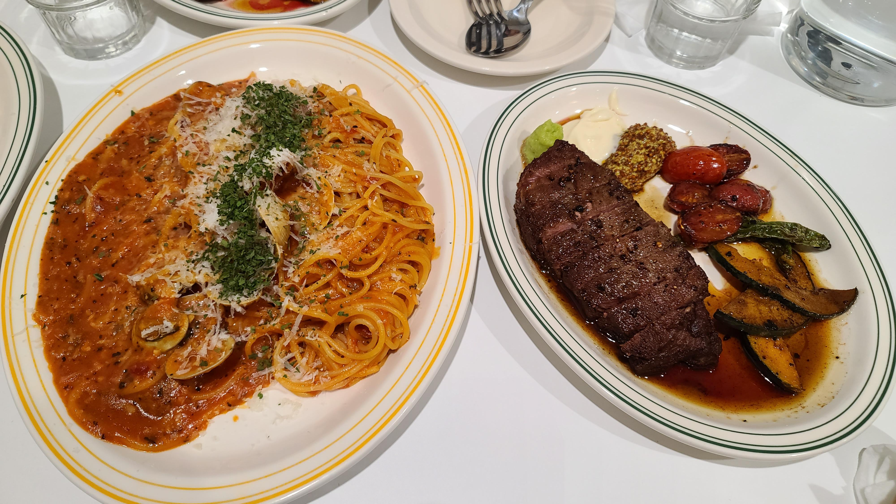 자리를 잡고 메뉴판을 살펴봅니다. 스테이크, 파스타, 리조또, 빵 전형적인 이탈리안 레스토랑의 메뉴입니다. 무엇을 먹을까 고민하다가 처음이니 대표메뉴를 먹어보기로 하고 스테이크와 크림과 토마토 스파게티를 주문해 봅니다.