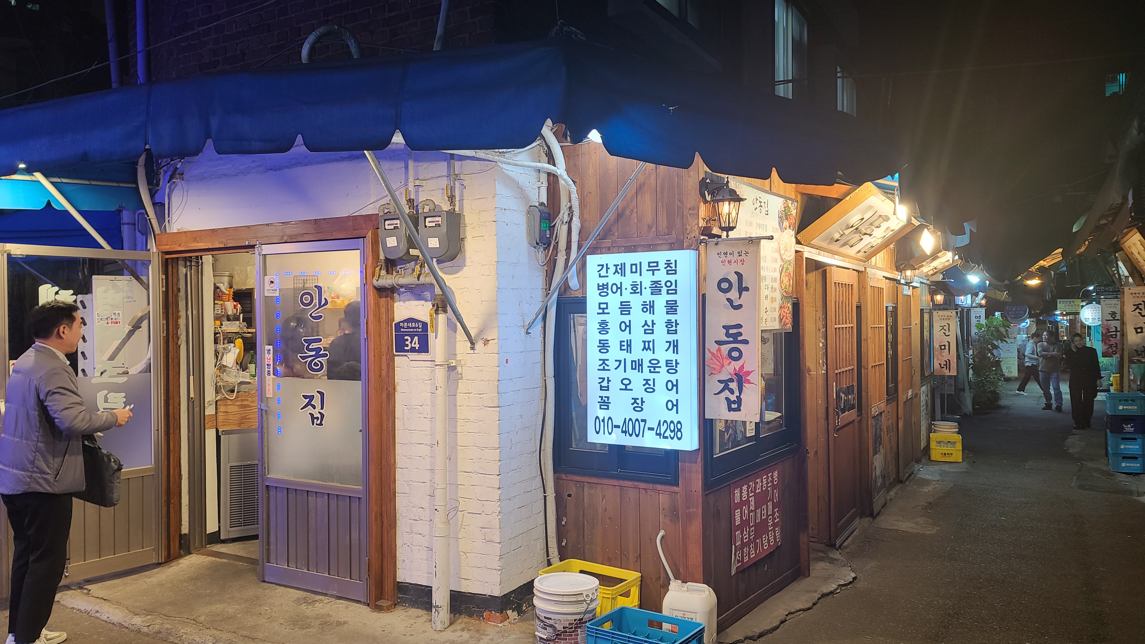 충무로역 근처 토속적인 느낌의 시장골목부근 무엇을 먹을까 고민하다가 해산물과 순대곱창의 조합으로 유명한 안동집을 가기로 합니다. 가게 앞에서 살펴보니 천막집의 느낌이 나는 인테리어에 안동집이라는 간판이 무척 잘 어울리는 것 같습니다.
