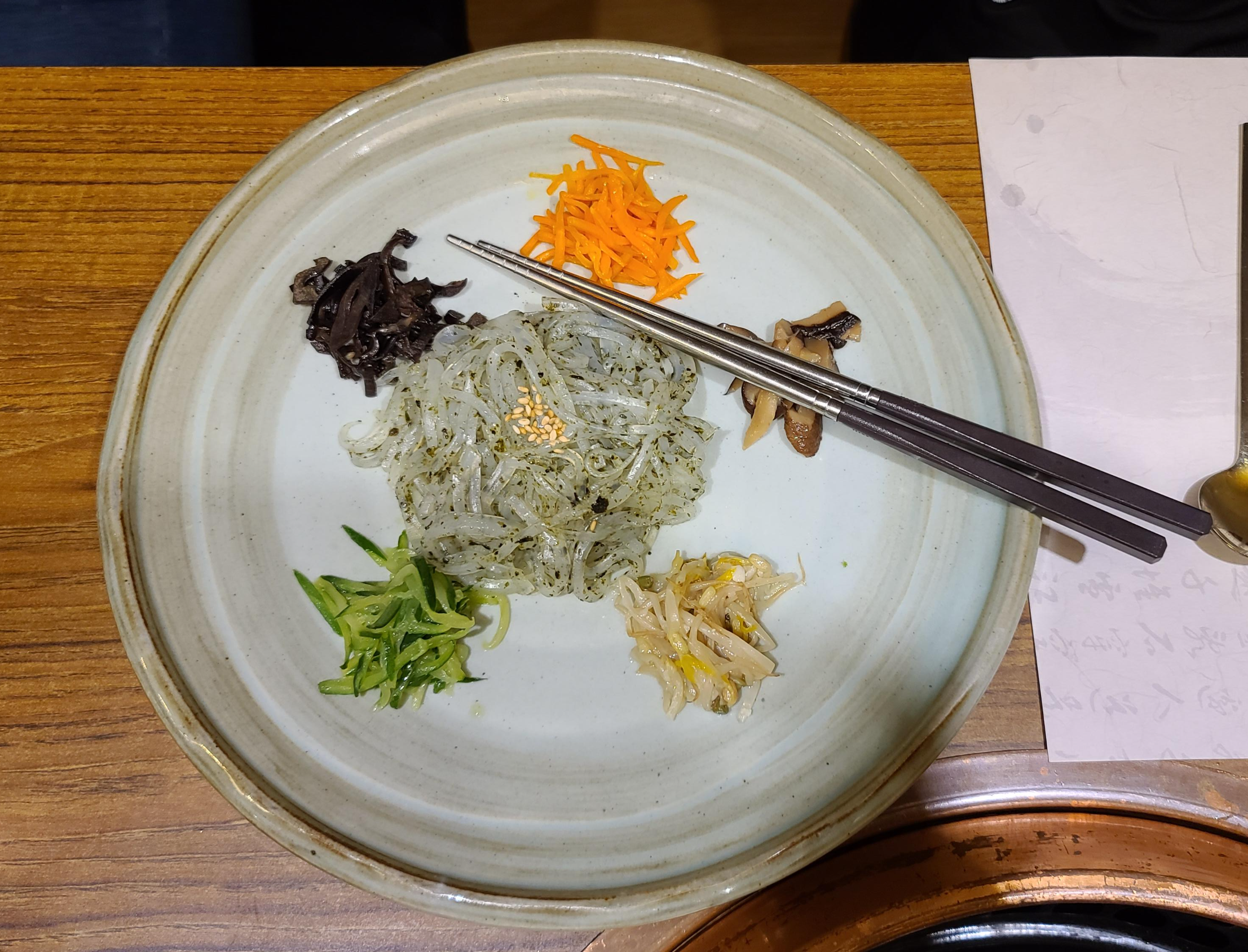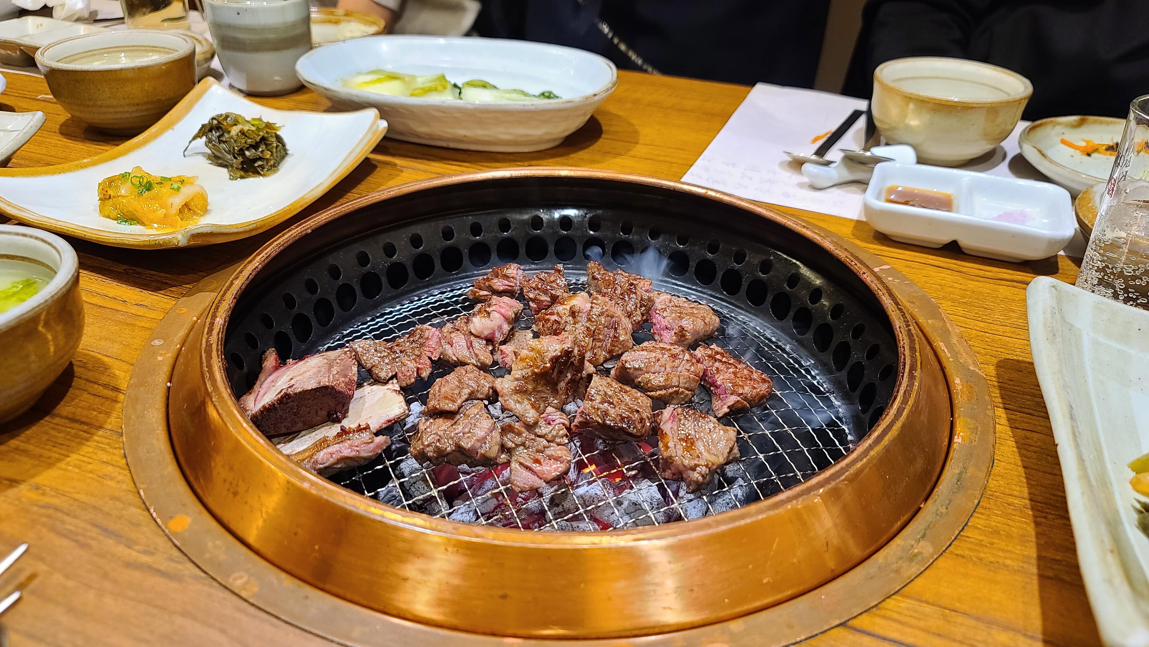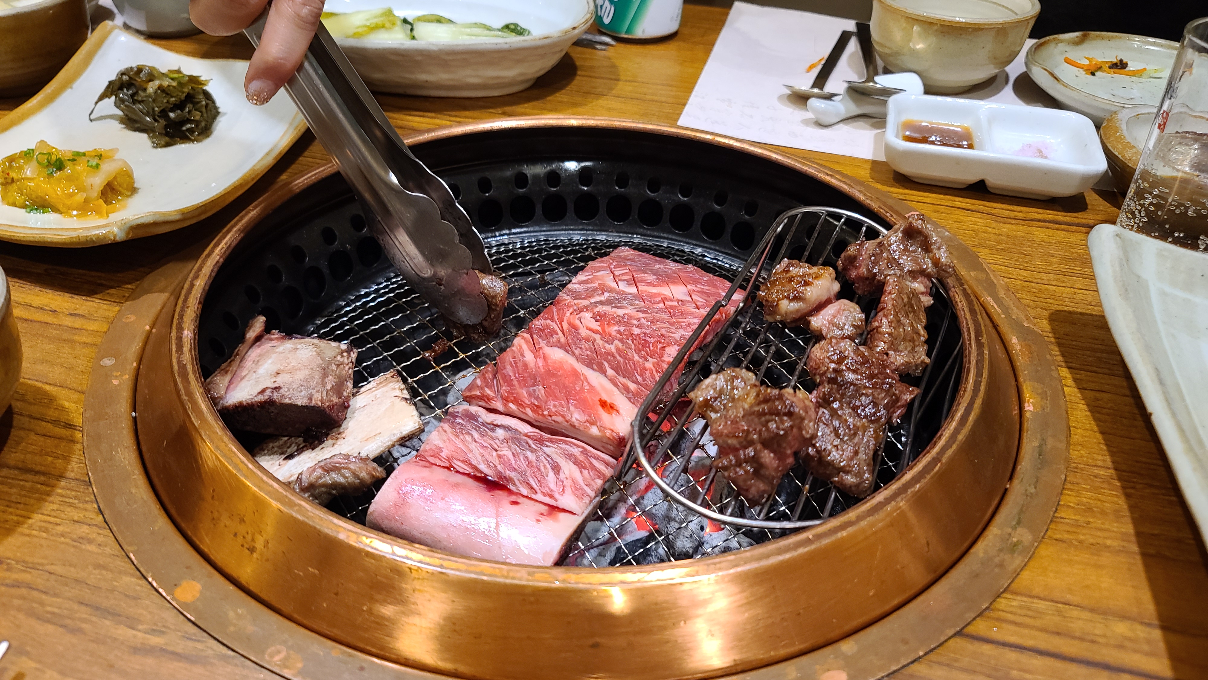 꽤 좋은 맛에 고기를 추가적으로 구워먹으며 메인요리인 고기의 감칠맛을 즐기게 됩니다. 코스요리에서 고기로서 좋은맛으로 유명 정육식당의 생갈비보다는 조금 떨어지지만 그래도 괜찮은 맛을 느끼게 해줍니다.