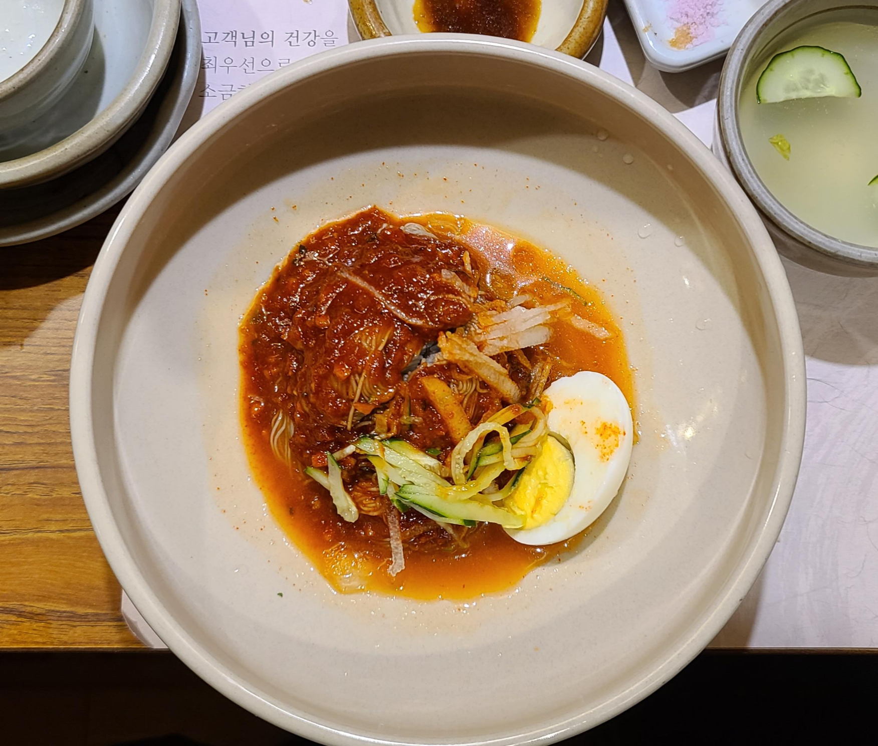 맛있게 고기를 먹고난 후 후식은 물냉, 비냉, 된장찌개 중에서 선택이 가능하며 개인취향에 따라서 모두 주문을 합니다. 비냉 맛을 보니 조미료가 살아있는 감칠맛으로 입안을 사로잡으며 훌륭한 코스의 마무리로 제격인 맛을 보여줍니다.