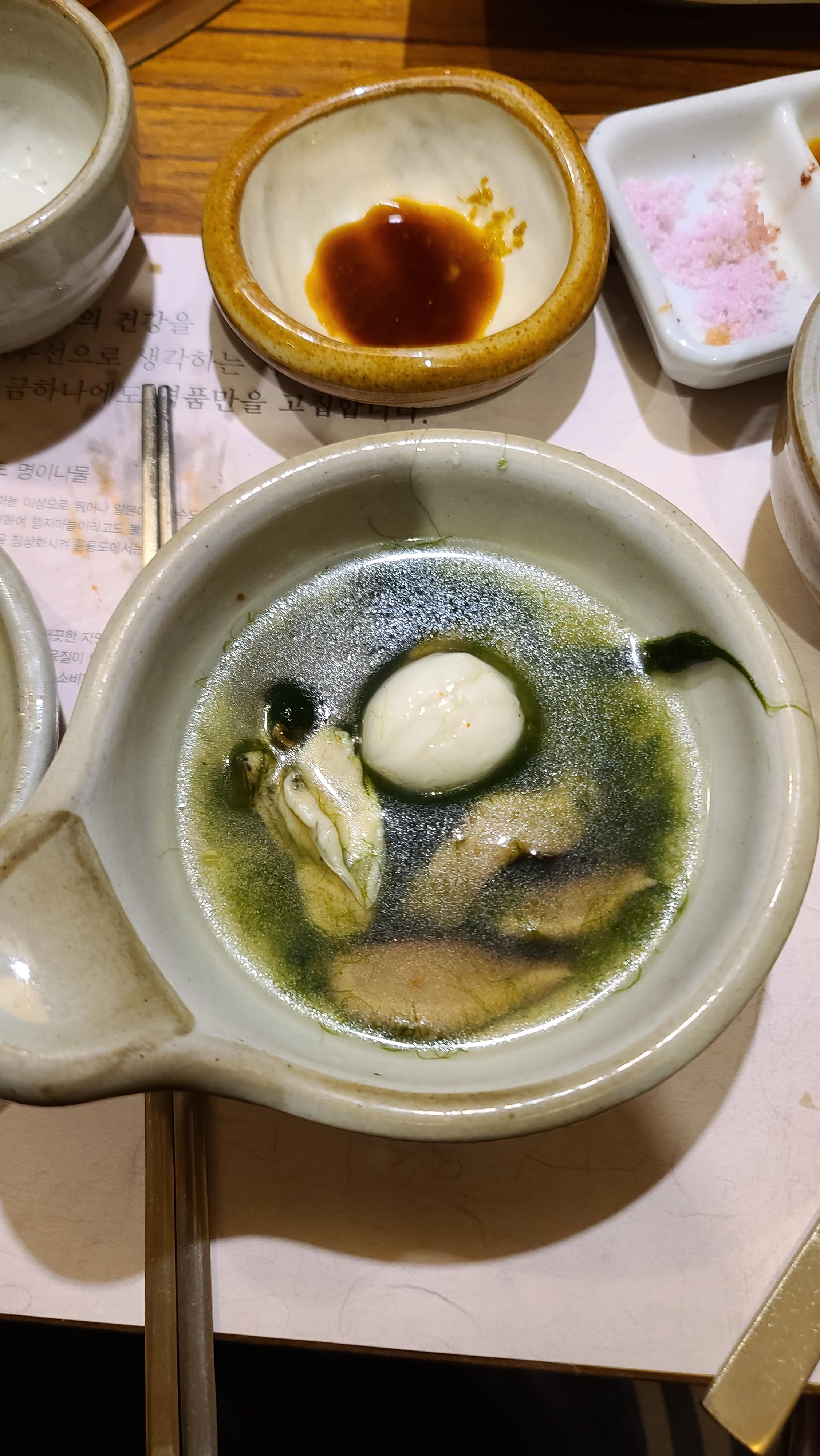 고기를 먹고난 후 한식에서 빠질 수 없는 모듬전과 굴매생이 국을 맛보면서 속을 가다듬습니다. 튀김, 구이, 회, 국, 조림, 무침 등 다양한 스타일의 한식을 맛보니 오감이 깨어나는 느낌이 듭니다.