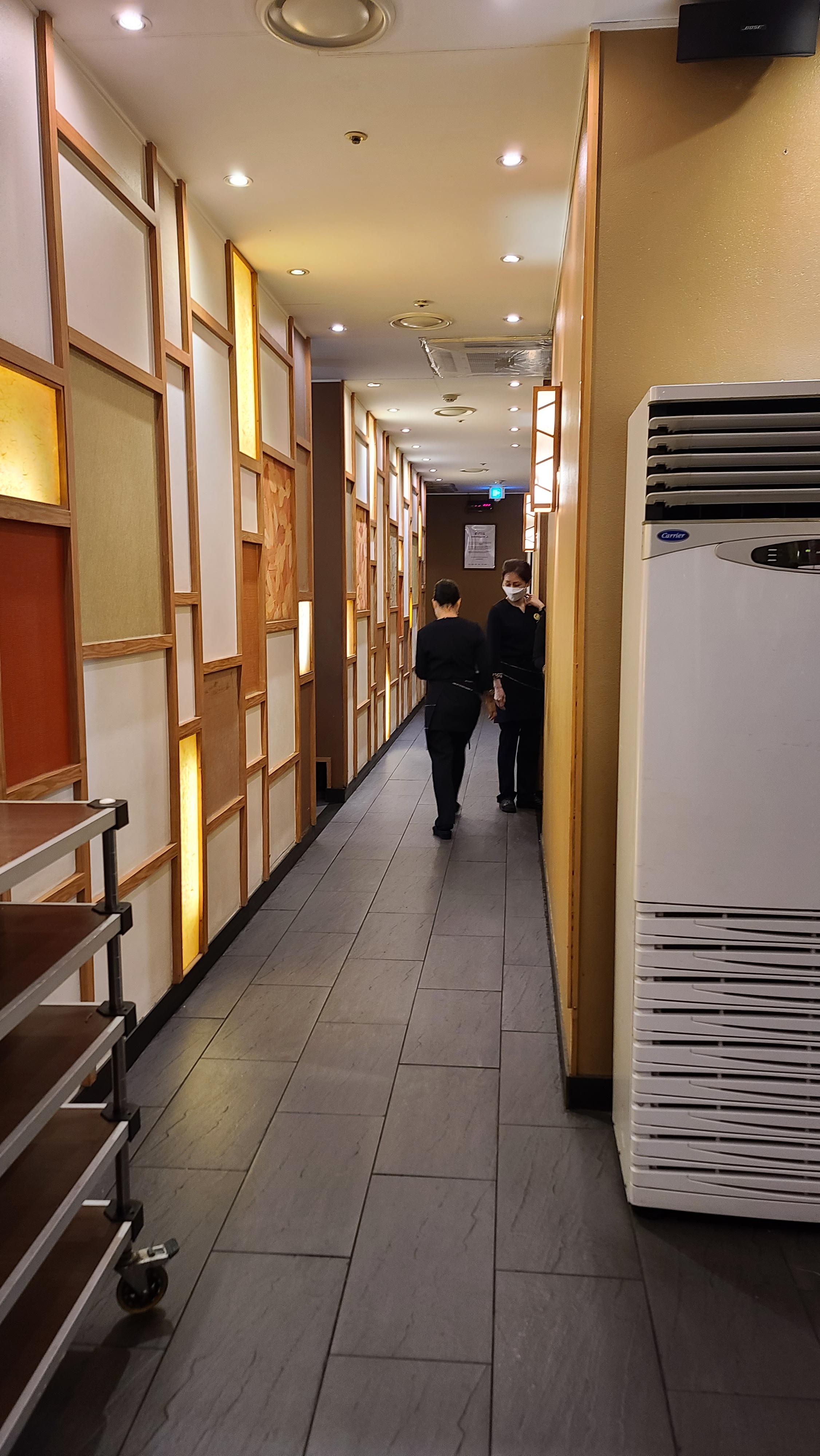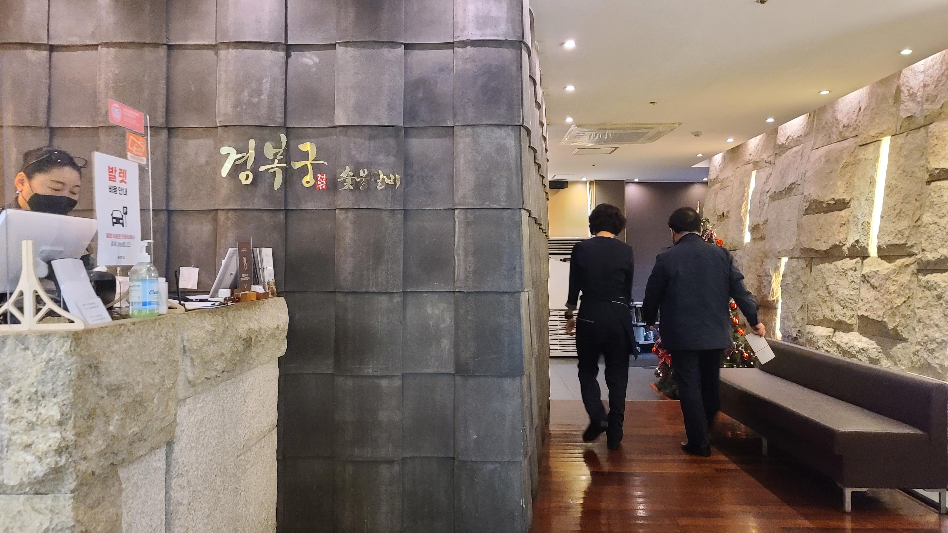 엘레베이터를 타고 3층으로 올라가니 경복궁 입구가 보이고 직원분의 안내를 따라 통로를 통해 룸으로 들어갑니다. 경복궁의 모든 좌석은 크기를 변경할 수 있는 룸으로 되어있어 프라이빗한 행사를 즐길 수 있게 만든 구조입니다. 가는길에 와인셀러를 보니 오늘 고희연의 축하는 샴페인으로 해야겠다는 생각을 하게 됩니다.