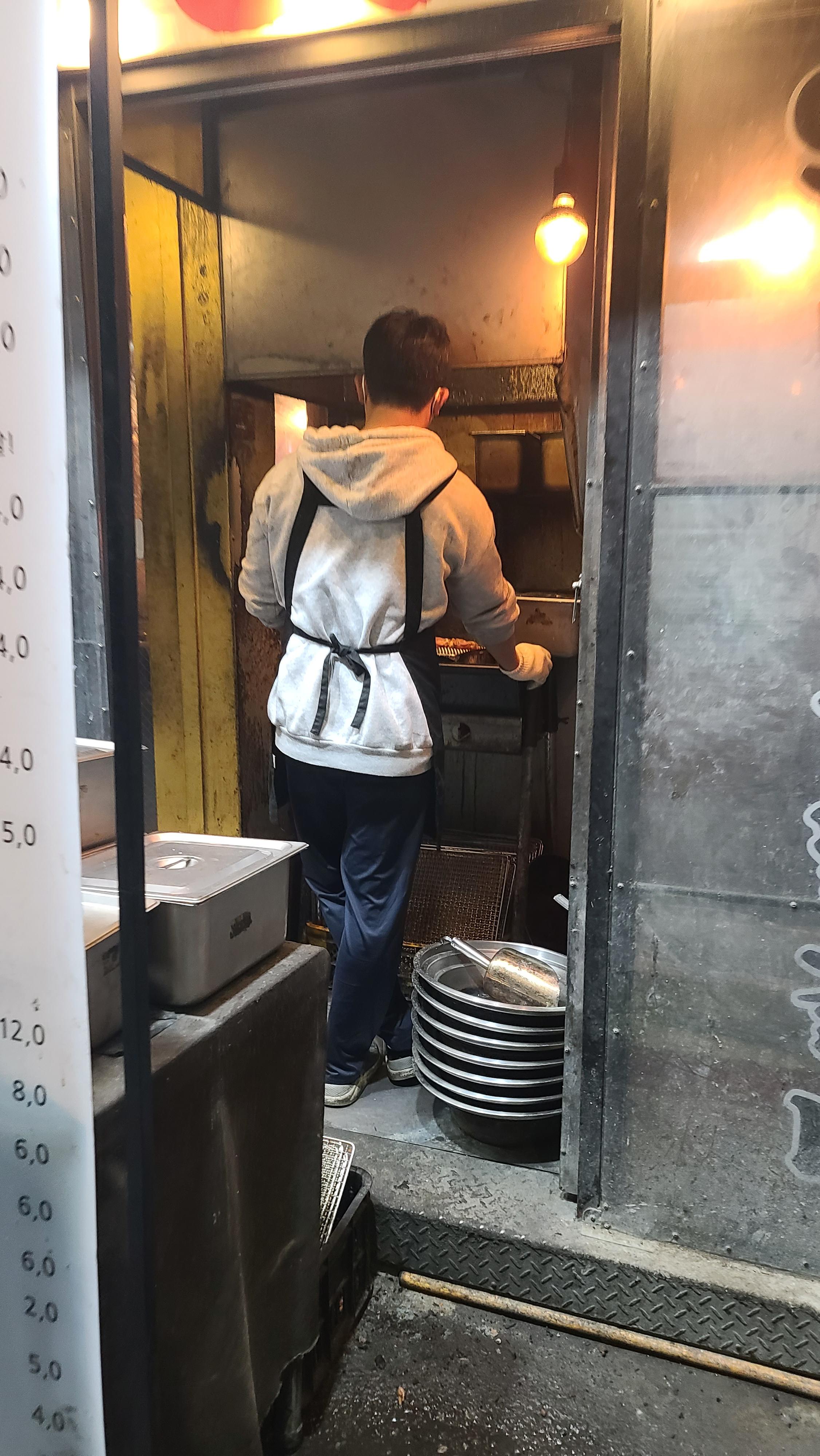 가게 안으로 들어가기전 모퉁이에서 숯불에 닭갈비를 굽고 있는 직원분이 눈에 들어옵니다. 익숙한 손놀림으로 숯불에 바짝 초벌구이를 하는 솜씨를 보니 무언가 예사롭지 않은 비법이 숨겨져 있을것 같다는 기대감이 조금씩 차오르게 됩니다.