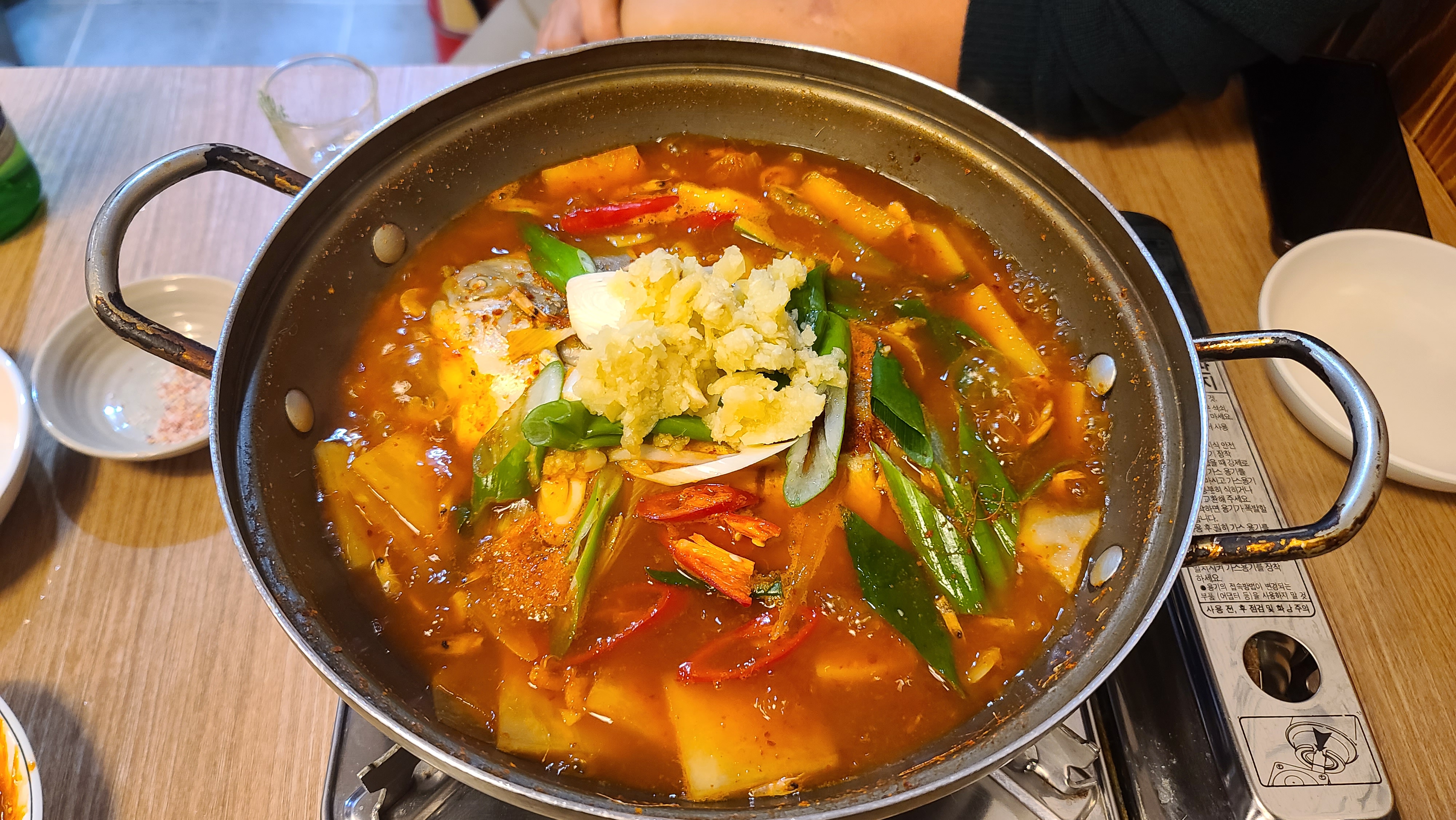 꼴뚜기회를 먹다보니 배를 채워야할 것 같아 병어조림을 주문합니다. 대표메뉴라고 쓰여있어 무언가 더욱 기대가 되는 메뉴입니다. 끓이면서 살펴보니 왕건이 병어와 대파와 양념이 듬뿍 들어가 있어 매우 혜자스러운 구성이 아닐 수 없습니다.