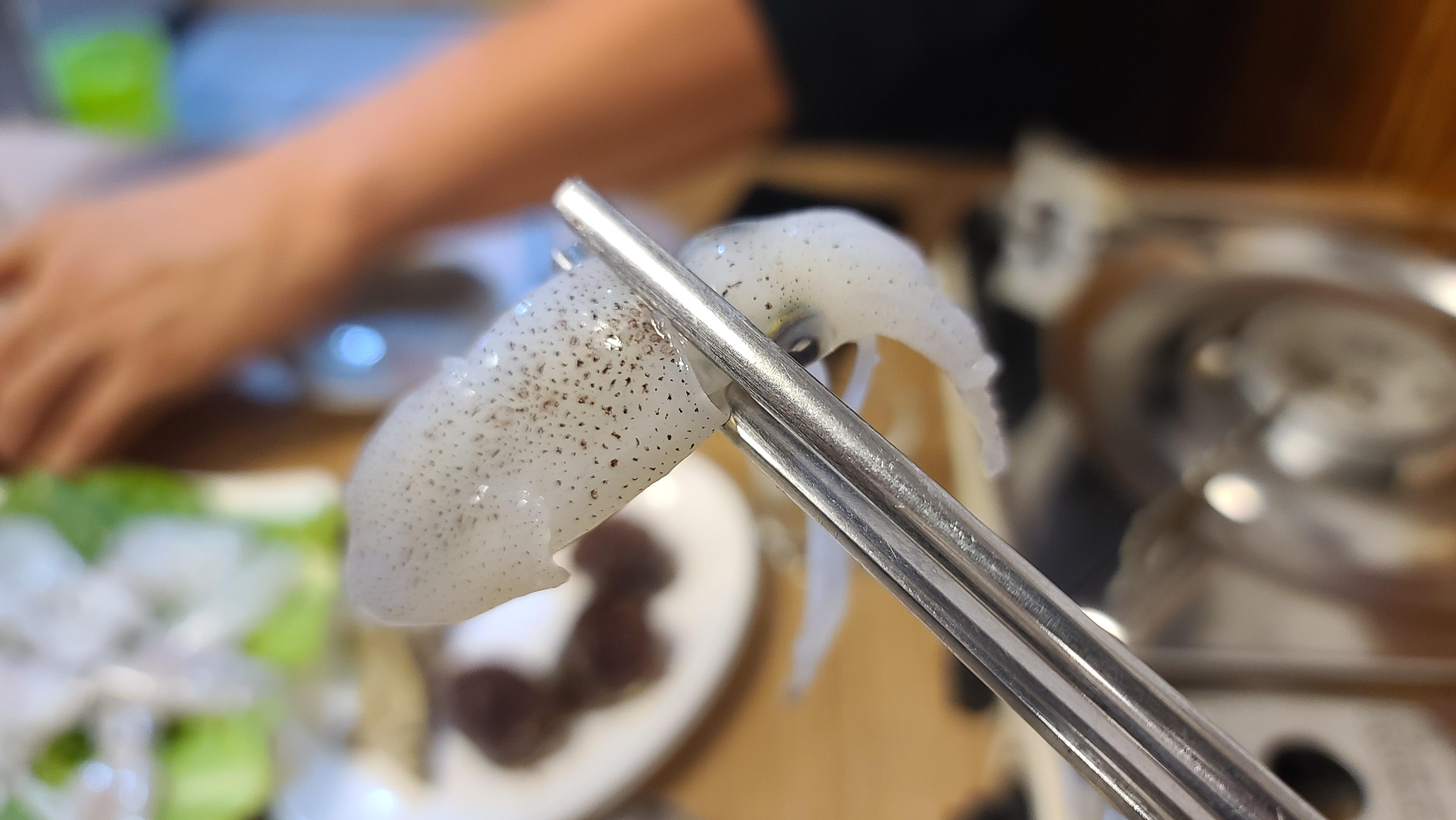 꼴뚜기를 좀더 자세히 살펴보니 표면의 반점이 살아있어 충분히 생으로 먹을 수 있는 상태라는것을 알게 됩니다. 쉽사리 변해서 취급하기 어려운 꼴뚜기를 회로서 즐길 수 있다니 감탄을 하며 맛을 보기로 합니다.