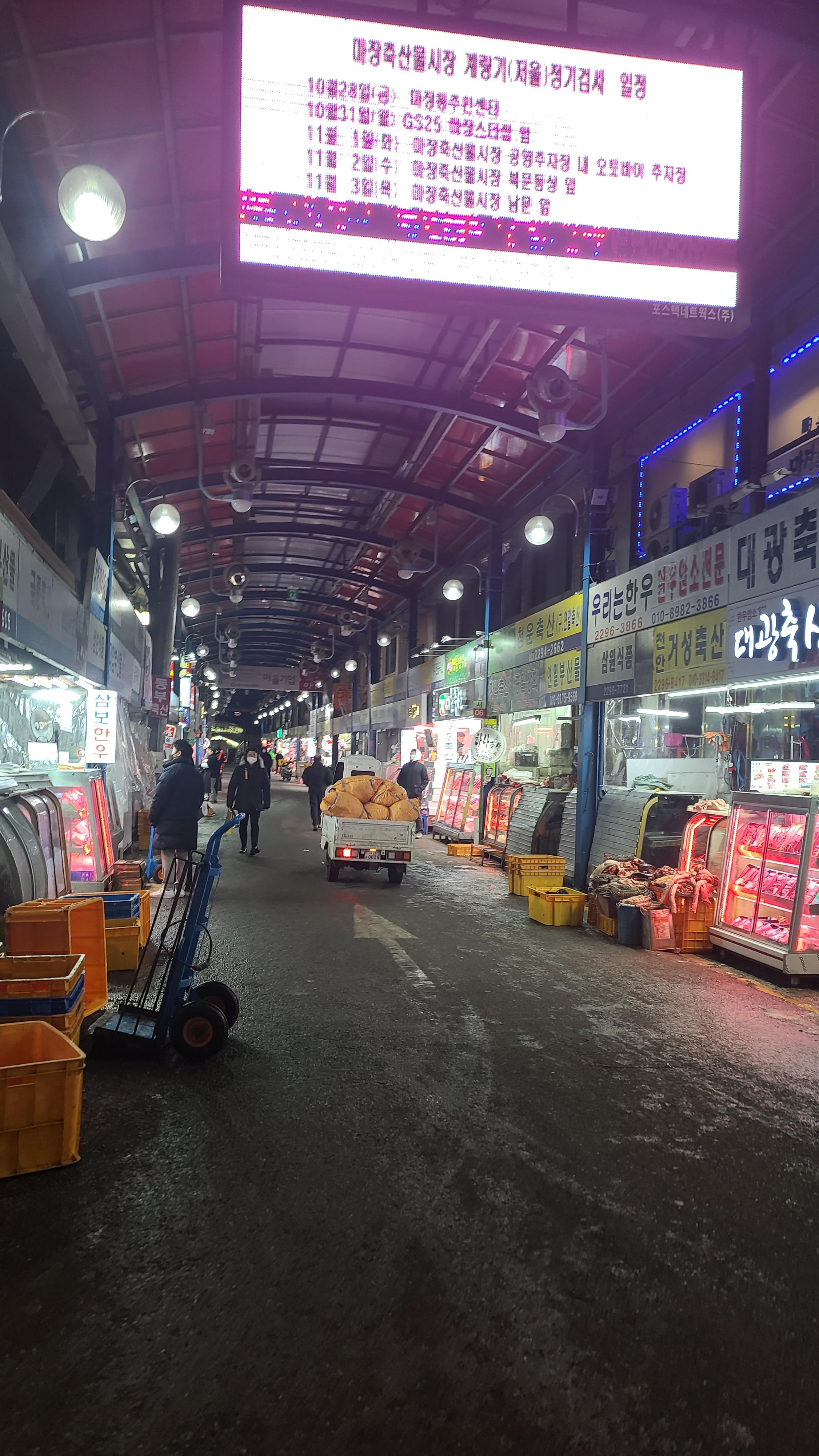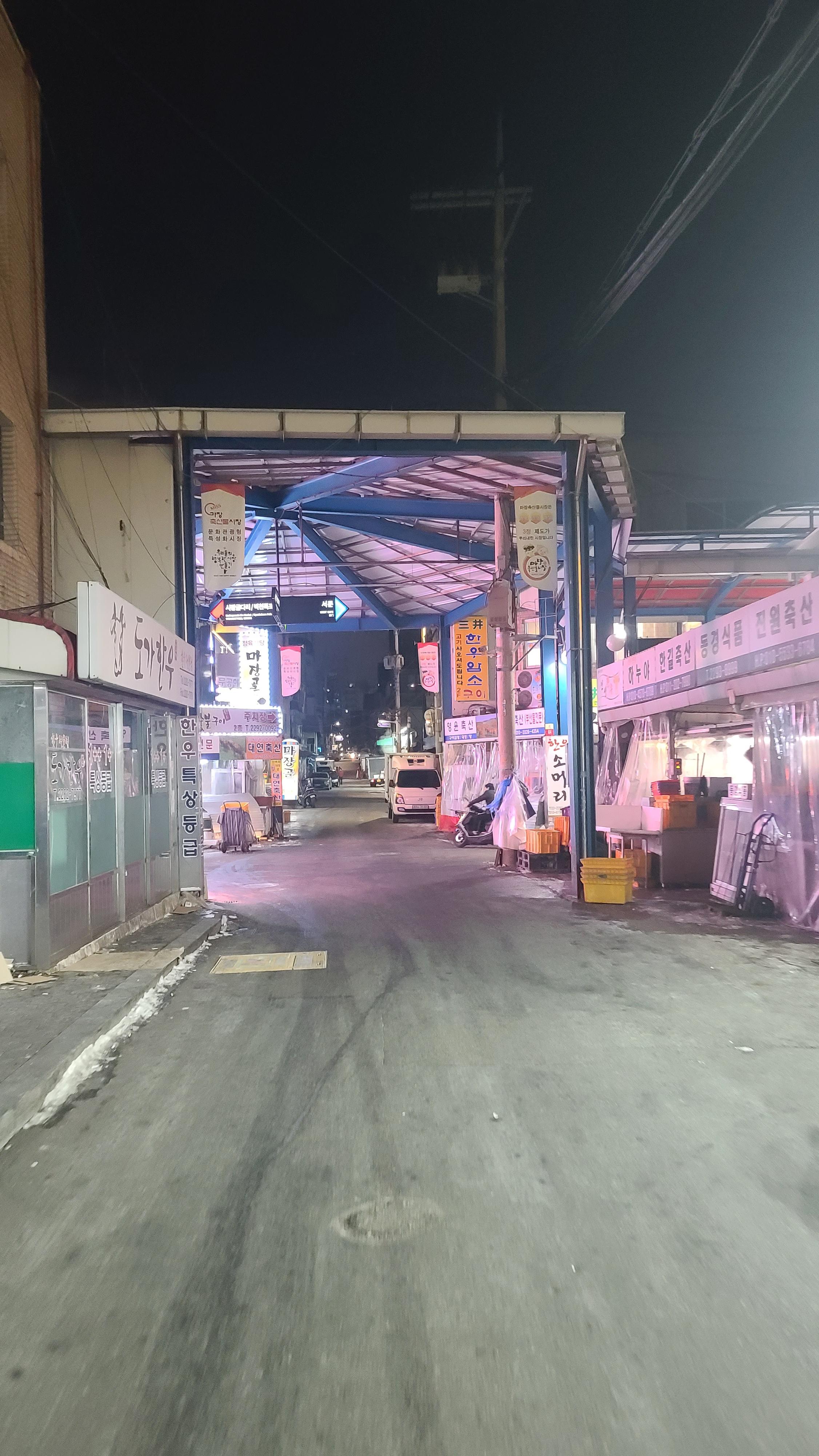 주차장에 차를 세우고 인생한우 입구 사거리를 둘러봅니다. 마장동 축산시장 서부쪽은 인생한우만 밝게 빛나고 나머지는 조금 어둡고 열지않은 가게도 많아서 역시 방송의 힘은 위대하구나 하는 것을 느끼게 됩니다.